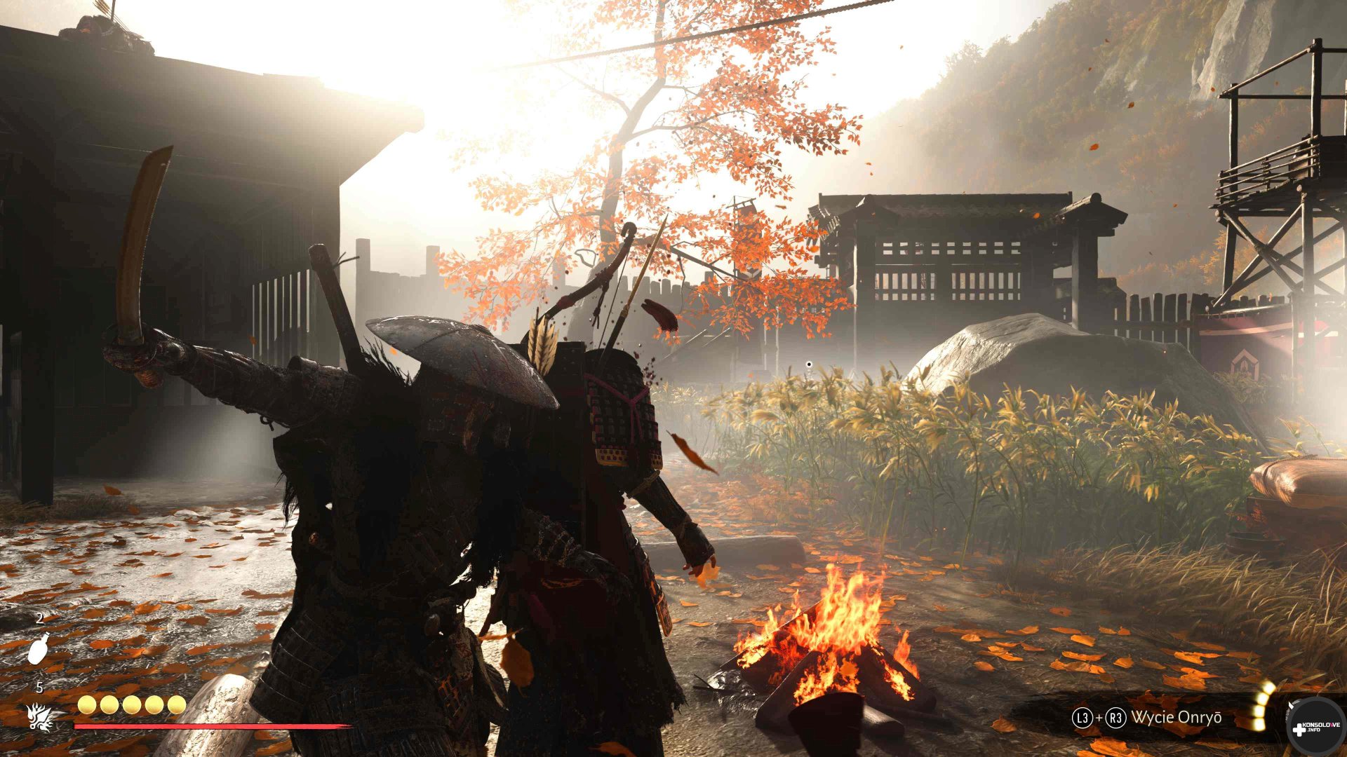 Ghost of Yotei mogę porównać w pewnym zakresie również do gry… Alan Wake II. Już tłumaczę, co mam na myśli. Podobnie jak w przygodach pisarza, perypetie Atsu także odznaczają się sporą wagą muzyki w kontekście wydarzeń. W pewnych momentach fabularnych czy podczas przemierzania Ezo z naszych głośników/słuchawek będziemy słyszeć bardzo klimatyczne japońskie utwory. Niemałą robotę robi w nich tekst. Nie ukrywam, że nie byłbym w stanie tego docenić, gdyby nie to, że Sucker Punch postanowiło dodać na ekranie napisy rozwiewające się na wietrze w odpowiednich momentach. To świetne rozwiązanie, które nie odrywa nas od świata, a jednocześnie pozwala zrozumieć, o co chodzi w danym momencie. Brawo!