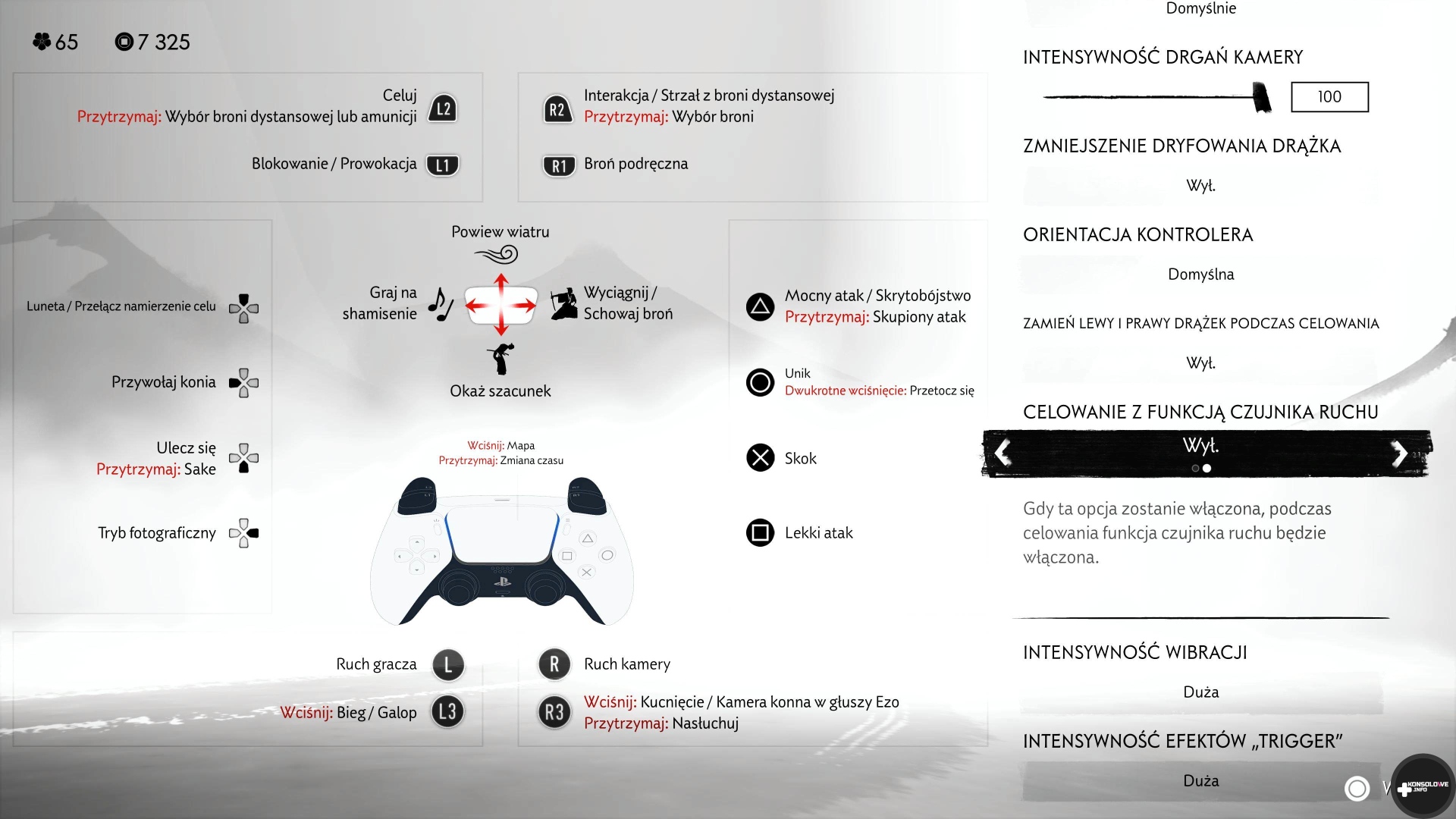 Kończąc już pomału dzisiejszą recenzję, warto przybliżyć możliwości dostosowania pod siebie rozgrywki. Studio Sucker Punch oddało nam szereg opcji, które możemy włączyć lub wyłączyć zależnie od naszych preferencji, czy predyspozycji. Na przykład zadecydujemy u tle napisów, czy zwiększymy ich rozmiar. Możemy też wyłączyć wyświetlanie imienia rozmówcy, a także wybrać kolor czcionki napisów. W przypadku eksploracji można zwiększyć widoczność przewodniego wiatru, czy automatyczny obrót kamery w stronę wiatru. Nie brakuje większych wskazówek walki, czy uproszczenia sterowania, co z pewnością przyda się graczom dopiero rozpoczynającym swoją konsolową przygodę. Oczywiście możemy też wybrać jeden z kilku gotowych poziomów trudności, a także samemu dostosować pewne elementy – obrażenia zadawane nam przez wrogów, czy okna czasowe na sparowanie. Co istotne, poziom trudności można zmieniać nawet w trakcie rozgrywki bez żadnych negatywnych konsekwencji. Nawet zdobycie platyny nie wymaga od nas grania na konkretnym poziomie trudności.