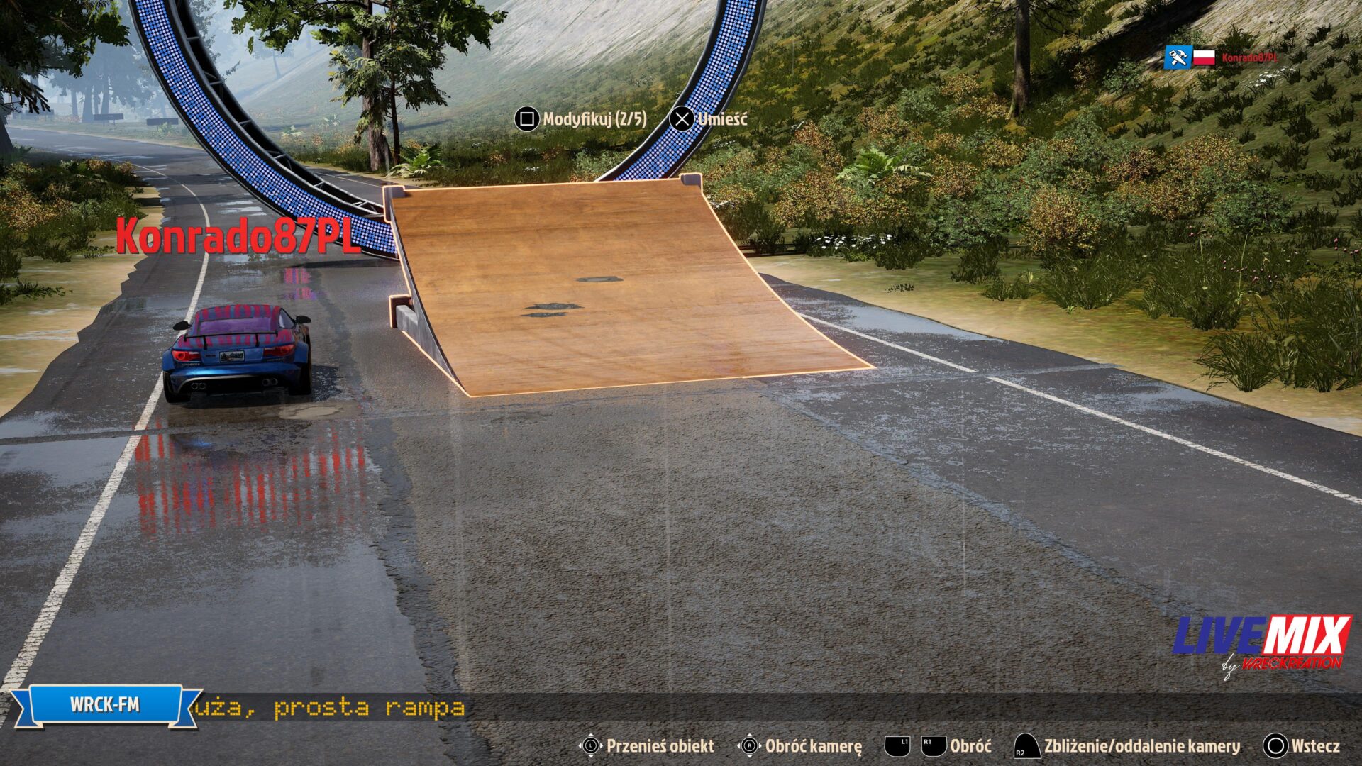 Najważniejszy filar gry Wreckreation to Live Mix. Jest to narzędzie pozwalające dokładać elementy toru na mapie świata bez przechodzenia do oddzielnego edytora. Do naszej dyspozycji są rampy, pętle, czy elementy „Hot Wheels’owe”, do tego różne dekoracje i punkty start/meta. Umieszczamy to wszystko bezpośrednio w świecie gry i od razu możemy cieszyć się stworzonym wyzwaniem. Dodatkowo po jednym naciśnięciem przycisku gracze mogą błyskawicznie zmienić pogodę, porę dnia, a nawet natężenie ruchu.