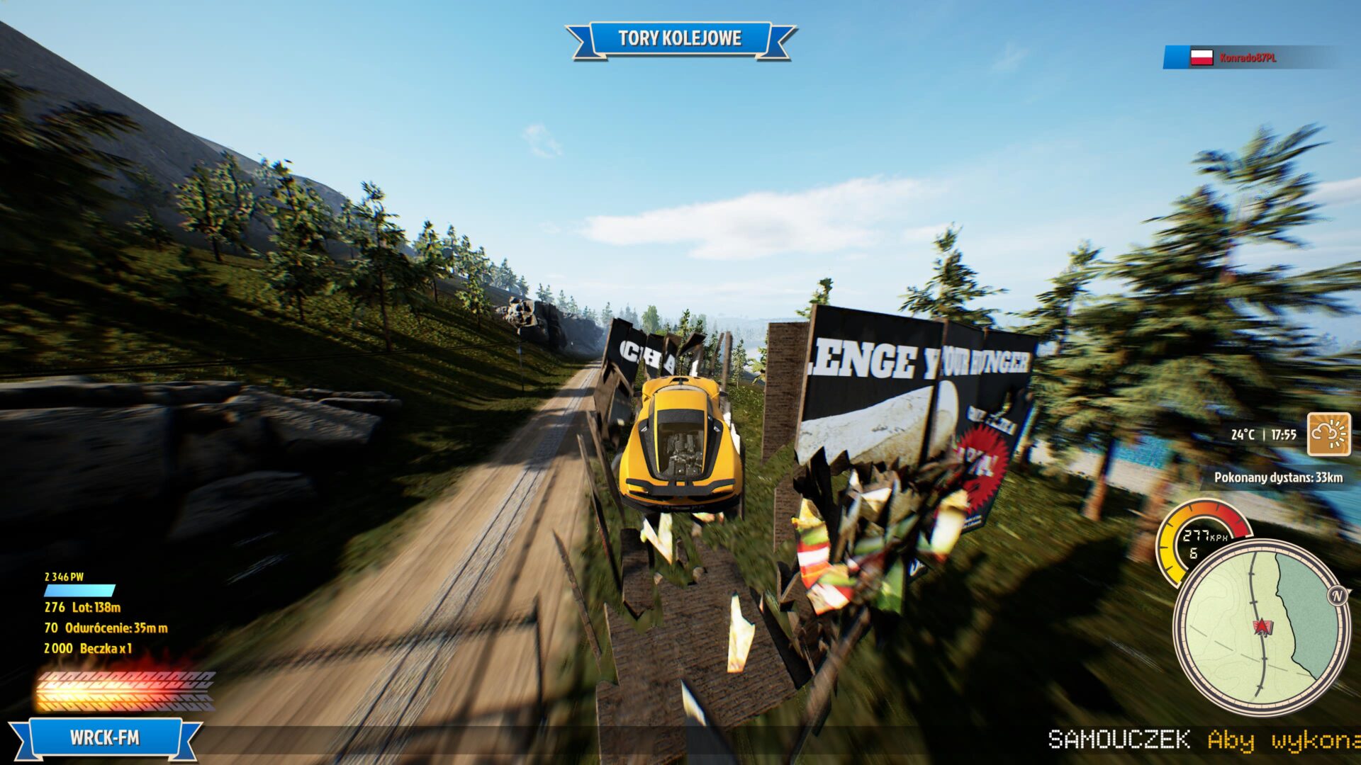 Wreckreation łączy klasyczne tryby zręcznościowe z kreatywnymi wariantami powiązanymi z Live Mix. W standardowym zestawie znajdziesz wyścigi, próbę czasową, przejazdy przez punkty kontrolne i oraz oczywiście tryb demolki, w którym musisz zniszczyć wymaganą liczbę pojazdów. Warto dodać, że Live Mix pozwala tworzyć własne wyzwania oraz publikować je, aby grać ze znajomymi w otwartym świecie zwanym MixWorld. Twórcy chcą, by społeczność sama tworzyła i wymieniała się eventami, ma to być klucz do długowieczności gry. Różnych wydarzeń jest całe mnóstwo, a ukończenie każdego z nich odblokowuje nam nowe samochody oraz części do budowy tras. To z pewnością daje poczucie stałego postępu, choć nie każdy wariant tworzony przez graczy będzie od razu satysfakcjonujący z powodu toporności edytora.