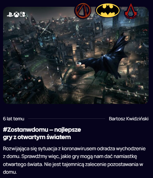 Na kafelkach z wpisami znajdziecie teraz loga najpopularniejszych (lub naszych ulubionych!) gier i serii. Zerknijcie na treści o ARC Raiders, Marvel Rivals czy Assassin’s Creed! Oprócz tego, w prawym górnym ekranie znajdą się także ikonki platform, których dotyczy dany news. Podobne informacje znajdziecie także na samych wpisach (zaraz nad tytułem).