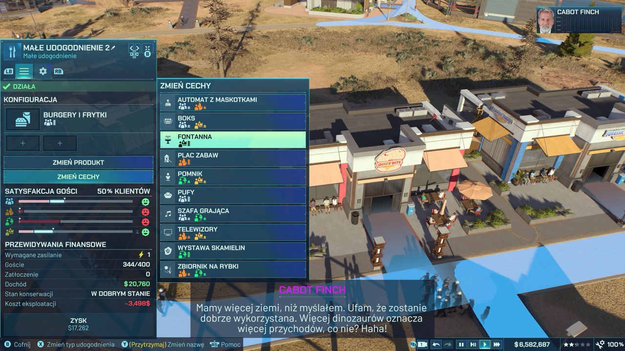 Tym samym np. jeśli chcemy skupić się na tworzeniu idealnych wybiegów dla zwierząt, to możemy ustawić, że są one dużo bardziej wybredne. Jednocześnie możemy też wyłączyć całkowicie zużywanie się budynków czy konieczność wydobywania skamielin, jeśli nie interesują nas te aspekty i chcielibyśmy je pominąć. Jest tu tak dużo opcji, że każdy utworzy swoją idealną mapę, gdzie będzie mógł wybudować najlepszy park w historii.