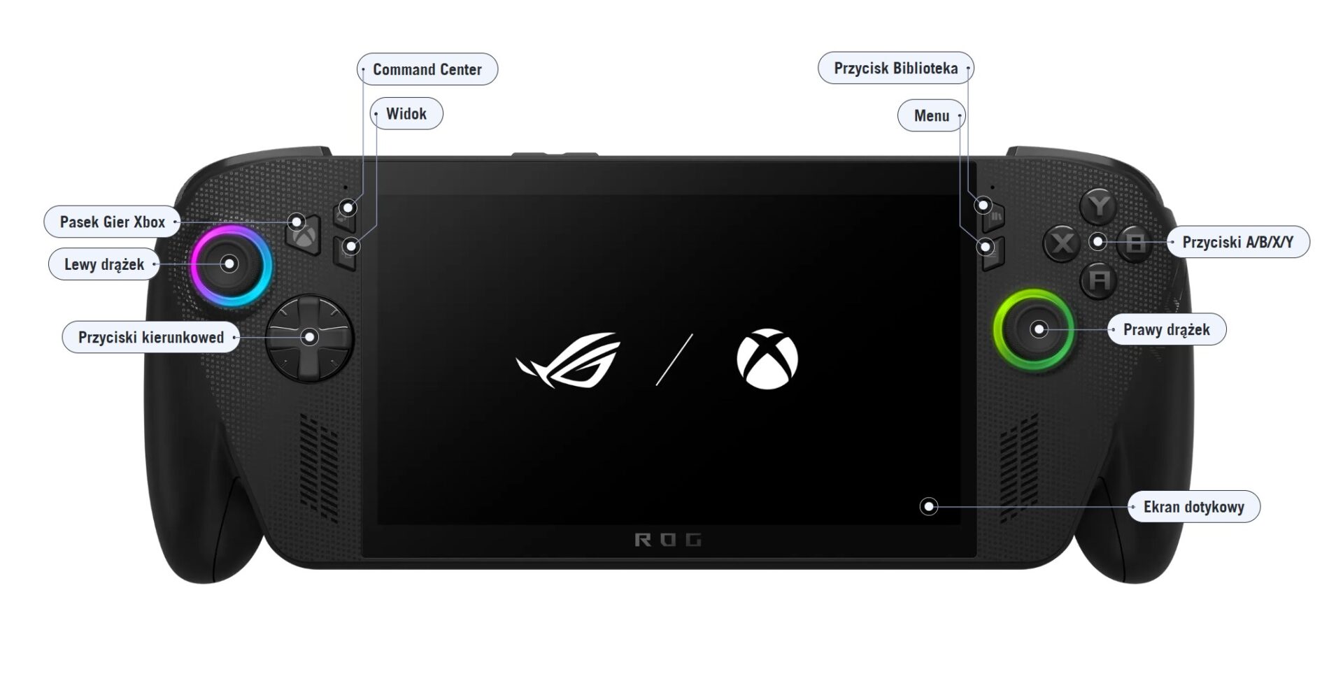 Jak już wspomniałem, ASUS i Microsoft bardzo by chcieli, aby ich urządzenie ROG XBOX ALLY X nazywać konsolą. Więc, jako fan przenośnych konsol do grania od premiery PS Vita, nie mogłem sobie odmówić przyjemności sprawdzenia tego urządzenia. Przy projektowaniu ROG XBOX ALLY z pewnością za cel postawiono sobie komfort i ergonomię użytkowania. Ramiona urządzenia mocno przypominają te, które znamy ze standardowych kontrolerów do Xboxa. Podobnie jest ze wklęsłymi analogami, które podobnie jak w padzie mają układ asymetryczny.