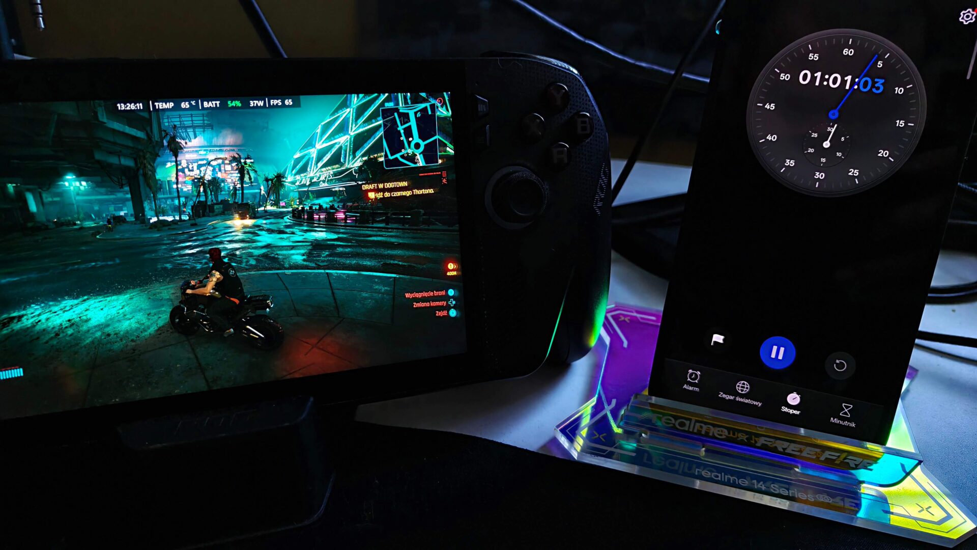 Duże zaskoczenie przyszło wraz z premierą Call of Duty: Black Ops 7. Gra działa w rozdzielczości 1080p i wysokich ustawieniach ze średnio 90-100 kl./s. Przy bardziej intensywnej wymianie ognia i kilku wybuchach traciłem maksymalnie 10 klatek. Jest to bez dwóch zdań fenomenalny wynik jak na tak małe urządzenie.