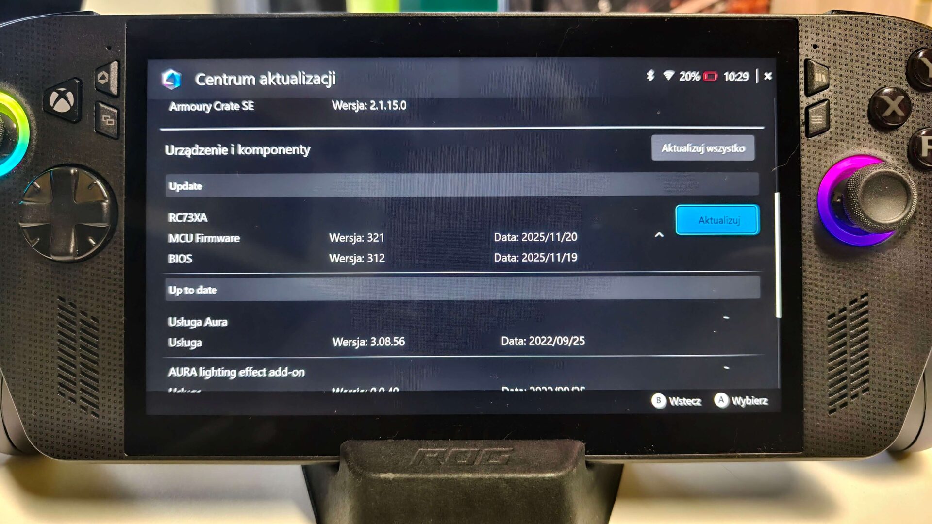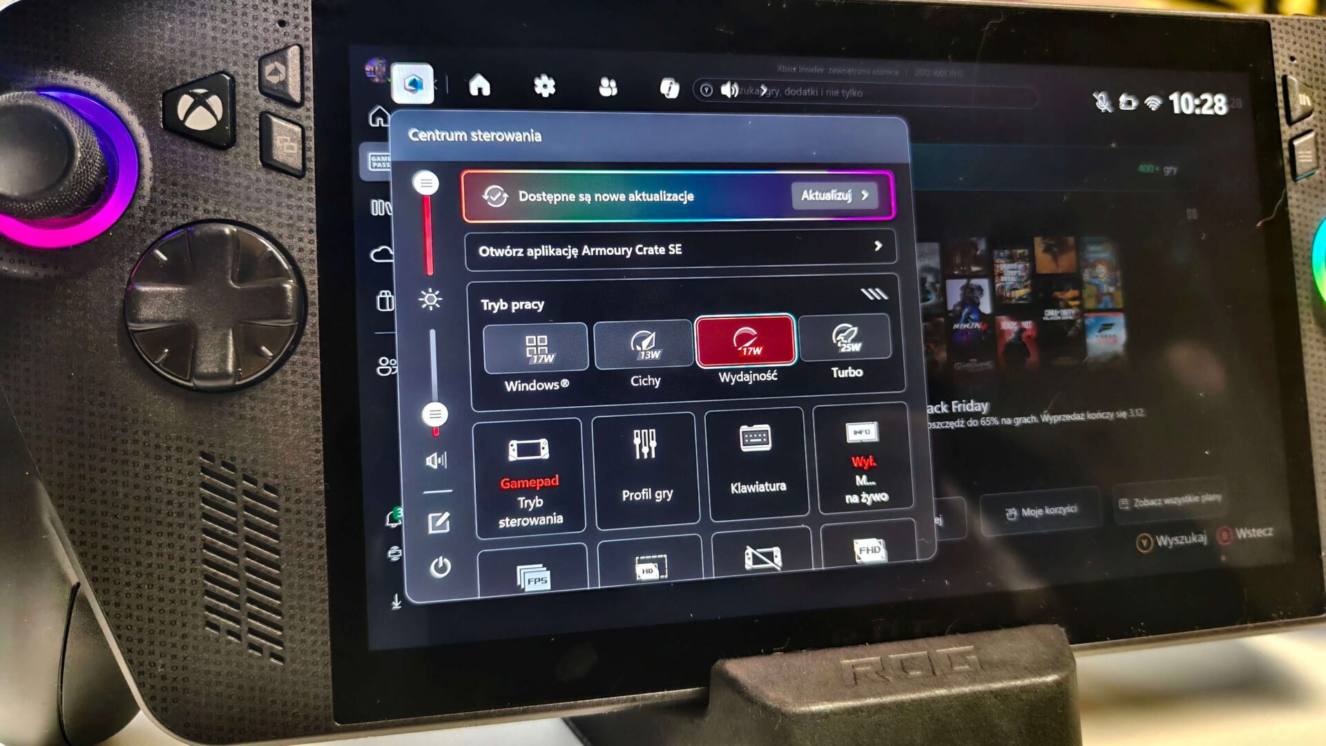 Jeżeli chodzi o minusy, to moim zdaniem ASUS i Microsoft robią dużą krzywdę temu urządzeniu, nazywając go konsolą. Z konsolą wspólne są tu tylko przyciski i ramiona z kontrolera Xbox. Reszta to po prostu czysty pecet ze standardowym Windowsem Home 11, którego jedyną modyfikacją jest obsługą przyciskami i dotykowym ekranem. Pięknie wygląda aplikacja Xbox, która uruchamia się na pełnym ekranie, ale to za mało, aby poczuć się, jak na konsoli. Tym bardziej że z trzech stron każdego dnia atakują nas jakieś aktualizacje: Windowsa, sterowników oraz samych gier.