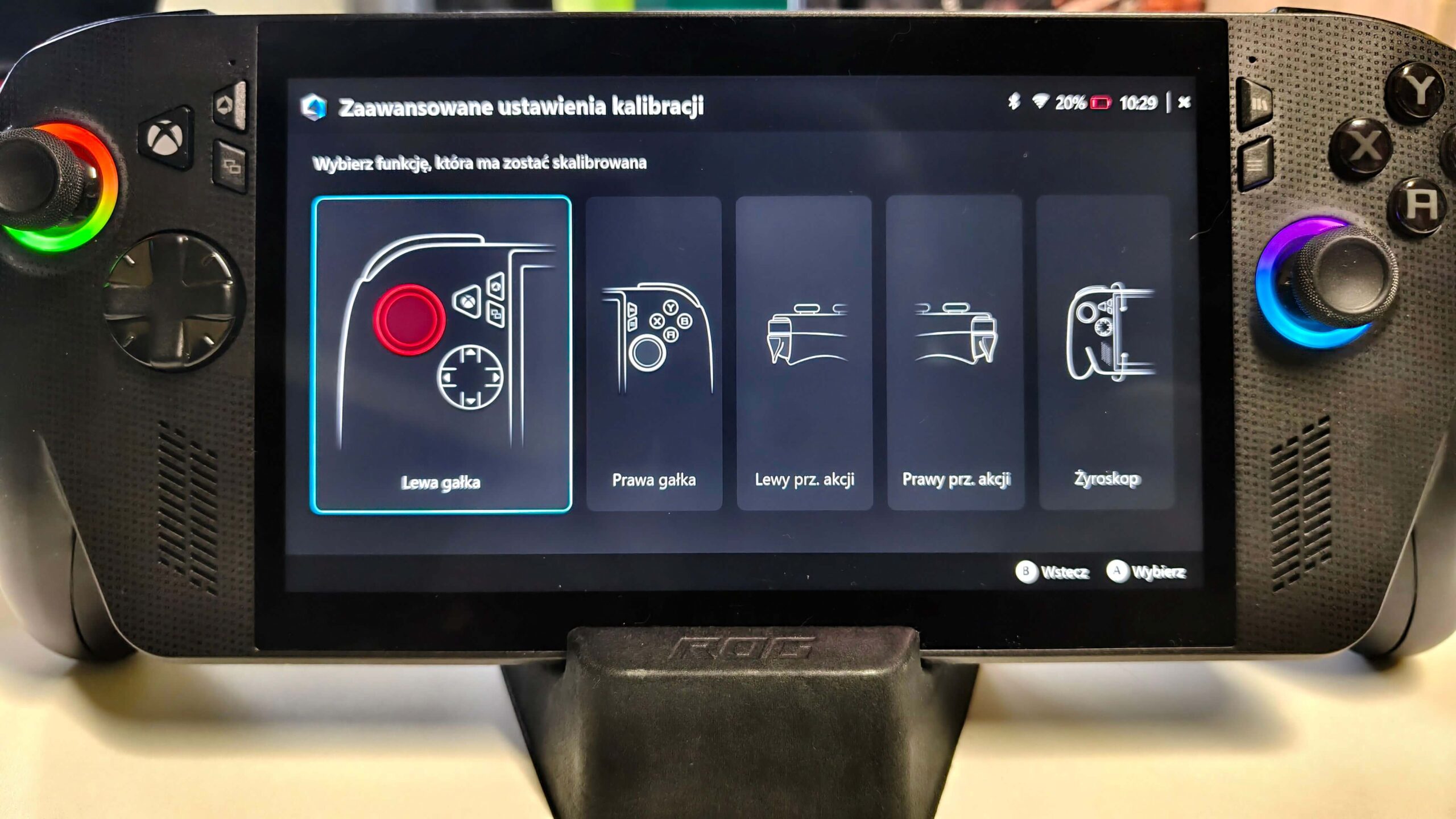 Armoury Crate SE to oficjalna aplikacja od ASUS-a, która jest całym centrum zarządzania ROG XBOX ALLY X. Co ciekawe, w swoim PC mam płytę główną od ASUS-a i musiałem do niej zainstalować właśnie Armoury Crate. W tej aplikacji mogę aktualizować sobie wszystkie sterowniki, regulować prędkość i oświetlenie wentylatorów, a do tego pokazuje mi wszystkie temperatury urządzeń. Podobnie jest z Armoury Crate SE, które przygotowano dla urządzeń przenośnych. Do naszej dyspozycji jest tu aż dwanaście zakładek z różnymi ustawieniami. Możemy przykładowo skalibrować analogi i triggery, a także ustawić podświetlanie obręczy wokół analogów. Jest tu również wspominane centrum aktualizacji sterowników oraz zakładka wydajność. Możecie dzięki niej ustawić własny tryb pracy oraz dokładnie sprawdzić wszystkie parametry urządzenia.