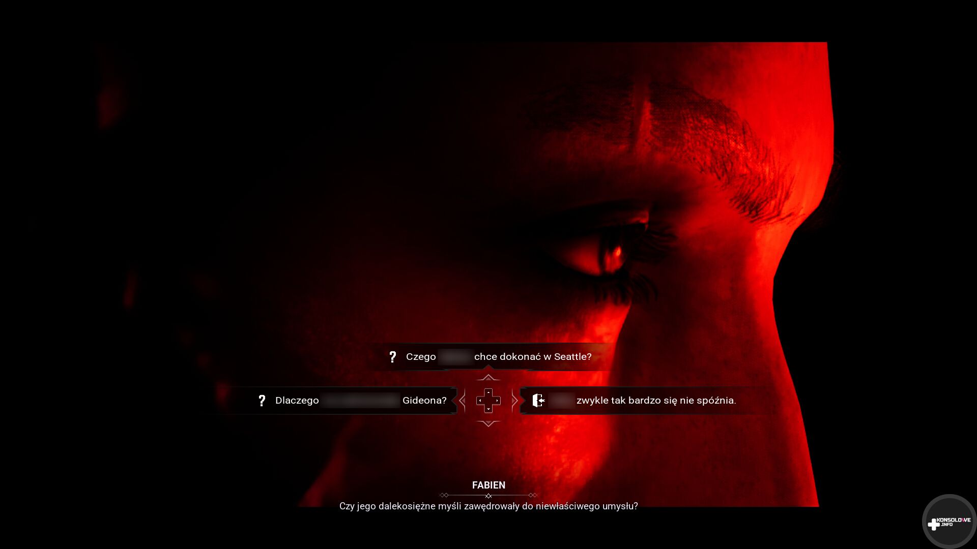 Immersję tę współtworzy oczywiście także udźwiękowienie. Na największe uznanie zasługuje moim zdaniem aktorka głosowa wcielająca się w Lou Graham – Jane Perry. Po raz pierwszy miałem usłyszałem tę aktorkę już około dekadę temu, w Hitmanie. Usłyszenie jej w zupełnie innej roli – abdykowanego księcia Seattle – było interesującym doświadczeniem. Perry wyszła w tej roli znakomicie i jestem pod wrażeniem jej kunsztu. Tym bardziej, że reszta aktorów głosowych spisała się niestety zaledwie poprawnie, co silnie kontrastuje z występem Perry. W polskich napisów jest też sporo literówek i jakość spolszczenia pozostawia sporo do życzenia.
