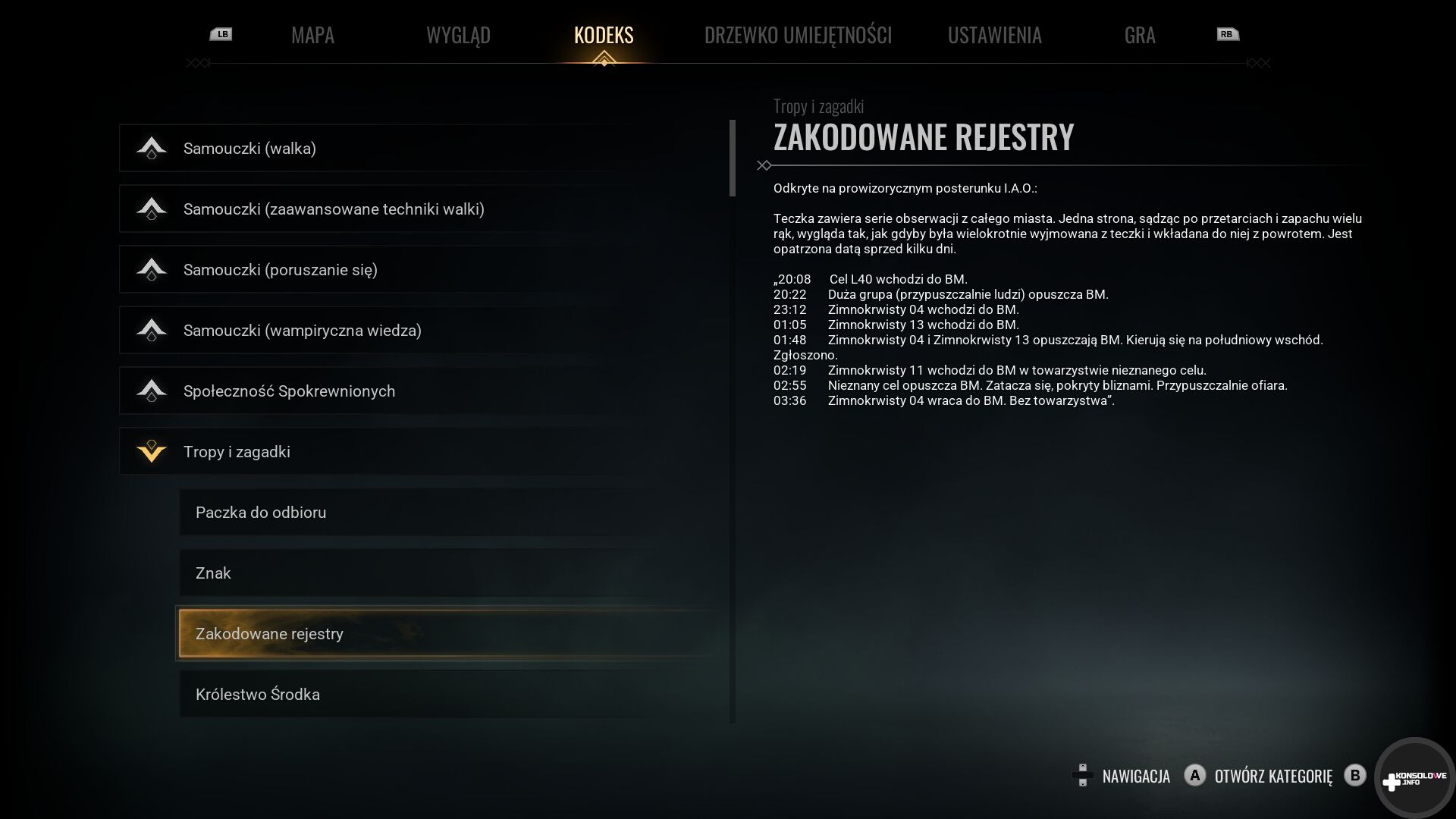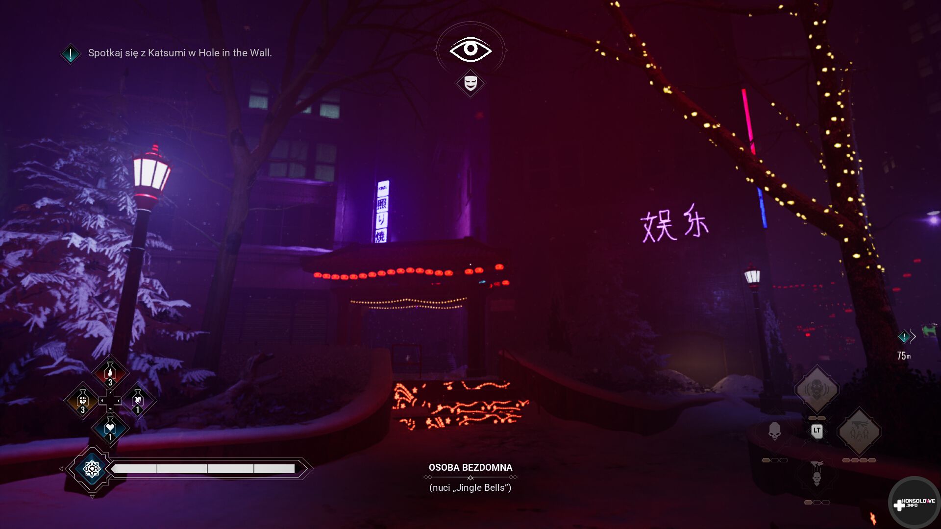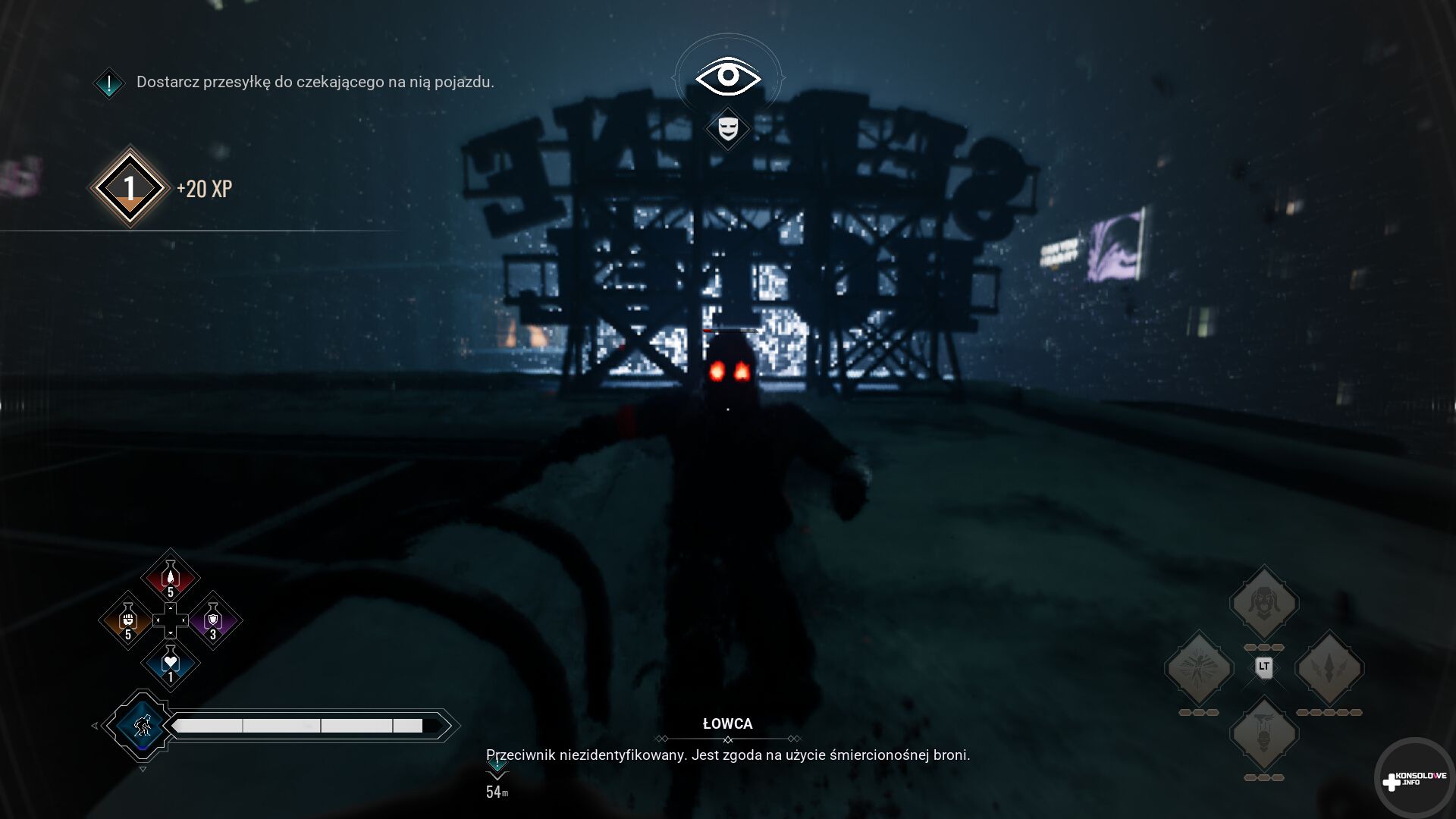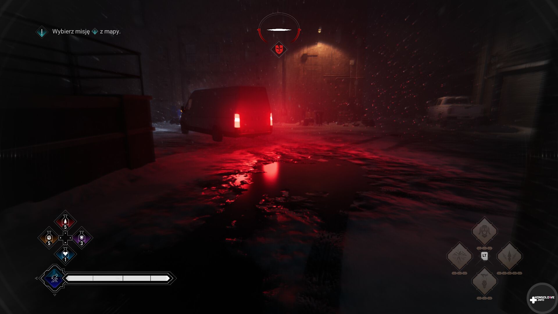 Podobnie zresztą jak obok łamania Maskarady. Za jej ciągłe łamanie konsekwencją jest wbicie kołka w serce naszej postaci, utrata części zgromadzonych jednostek rezonansu i doświadczenia i restart od punktu kontrolnego. Jednakże trzeba się bardzo mocno postarać, aby dotrzeć do takiego „końca”. Wystarczy bowiem wskoczyć na dach i przeczekać kilka lub kilkanaście sekund. Nie ukrywam, że jestem bardzo rozczarowany takim trywializowaniem tytułowej Maskarady.