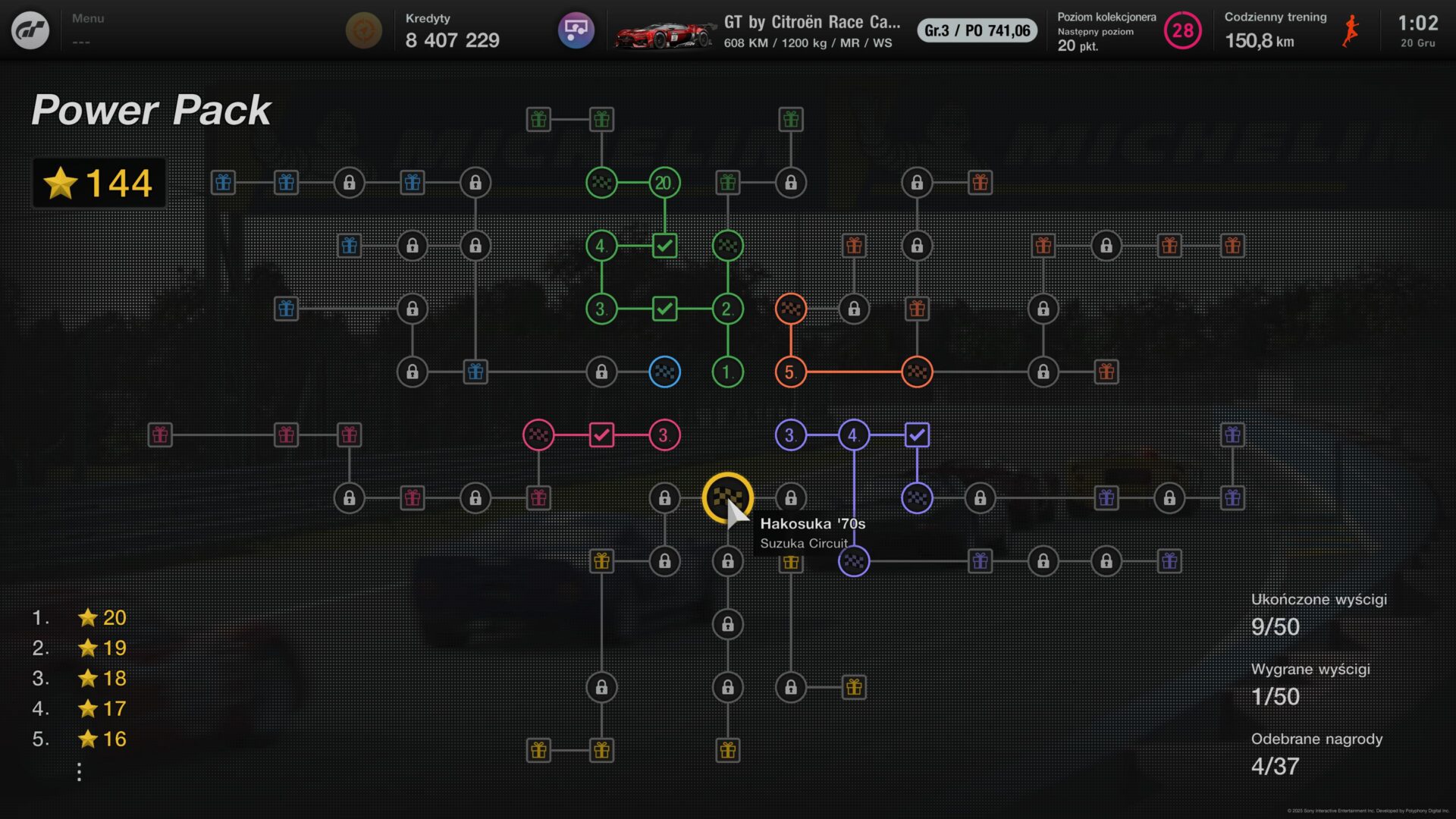 Power Pack nie zawiera unikalnej zawartości niedostępnej w inny sposób. Wszystkie auta można zdobyć grając, a kredyty zarobić w wyścigach. Dodatek nie zmienia więc struktury gry – zwiększa jedynie jedynie tempo zarabiania kredytów i kolekcjonowania aut. DLC oferuje 50 wyścigów z kwalifikacjami i treningiem w ustalonych modyfikacjach samochodów, rozmieszczonych na schemacie, który najwyraźniej inspirowany jest mapą warszawskiego metra. Ścigamy w sześciu odnogach, każda z innym motywem kategorii pojazdu. Niebieski to amerykański muscle car, pomarańczowy to japońskie samochody z lat 90., a żółty to historyczne samochody rajdowe i wyścigowe. Ważne: Nie, nie możesz wziąć udziału w wydarzeniach autem z własnej kolekcji samochodów.