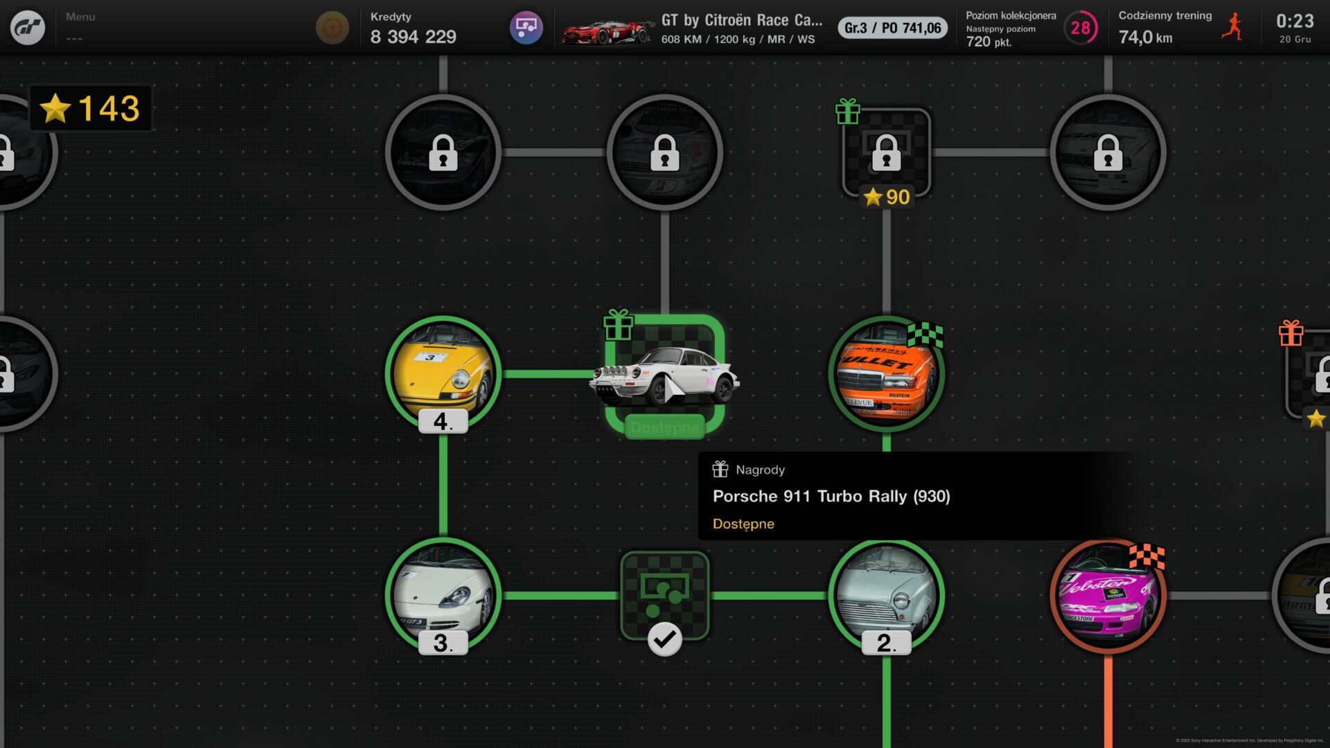 Ukończenie wyścigu odblokowuje kolejny event. Po każdym wyścigu otrzymujesz również gwiazdki, w zależności od zajętej pozycji. Łączna liczba zdobytych gwiazdek odblokowuje nagrody (auta, kupony, kredyty) i kolejne wydarzenia bonusowe. 20 gwiazdek to maksymalny wynik za pierwsze miejsce zdobyte w wyścigu.