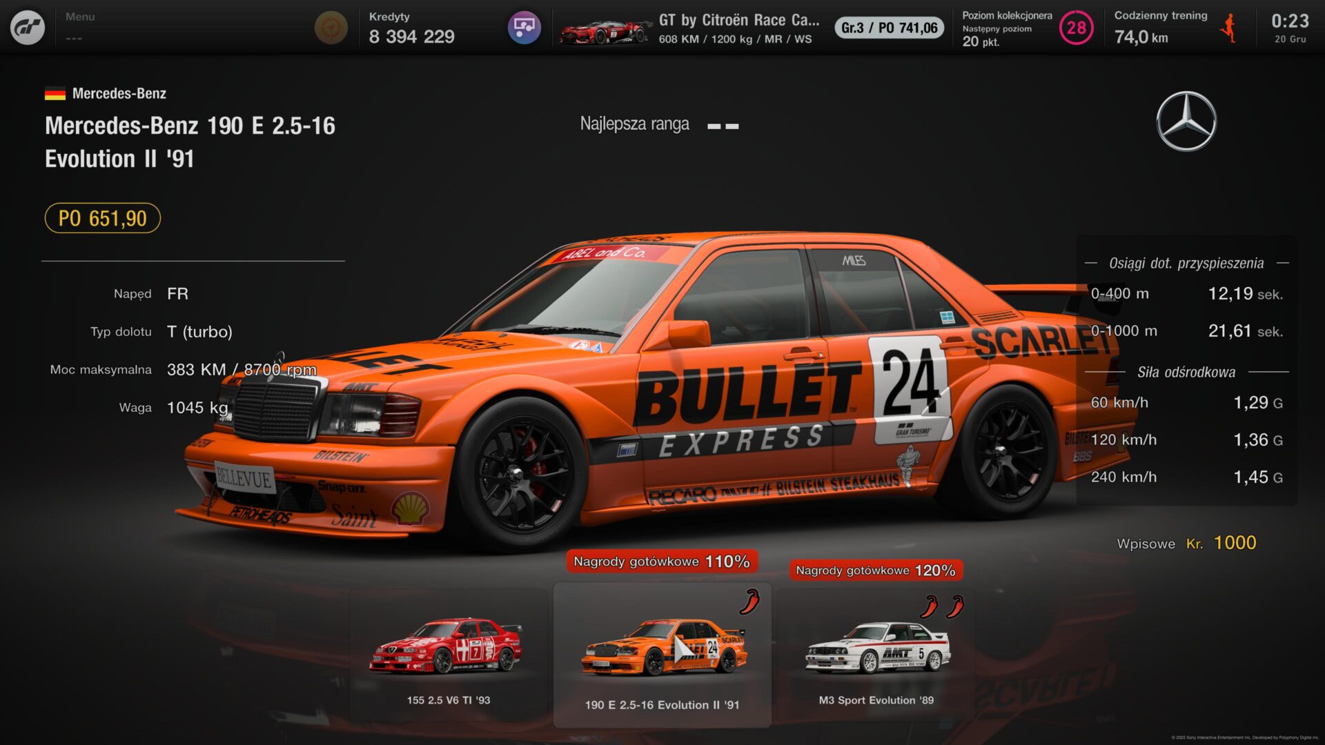 Co więcej, ekonomia GT7 po kolejnych aktualizacjach została wyraźnie zbalansowana. Zarabianie kredytów jest dziś mniej frustrujące niż na premierę, a liczba wydarzeń pozwalających na sensowny zarobek jest wystarczająca dla cierpliwych graczy. Czasem milion kredytów można zarobić w 2- 3 godziny grania.