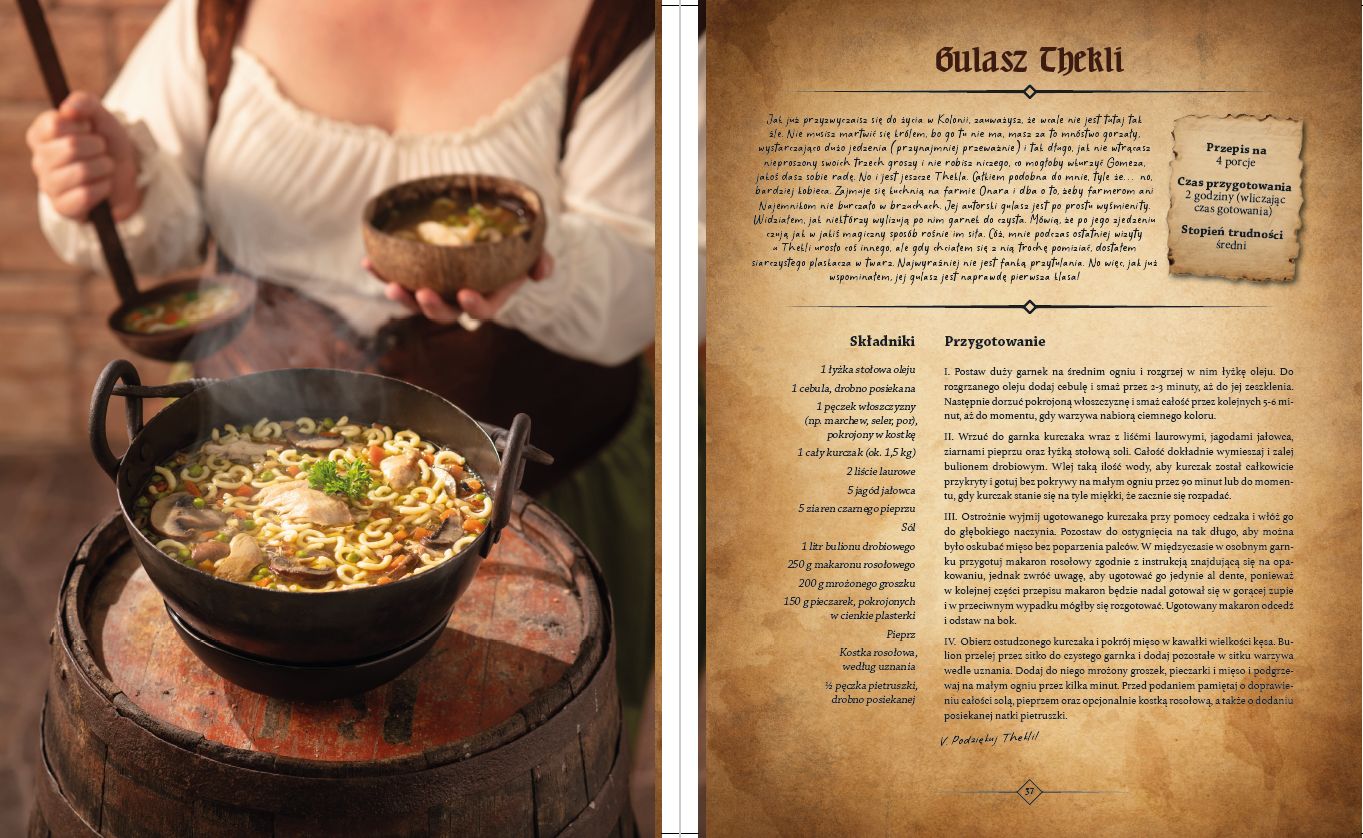 Poznaj unikatowy świat serii gier Gothic… od kuchni! Popularny i ukochany szczególnie przez polskich graczy cykl zaprasza na kulinarną wyprawę do Starego Obozu, na wyspę Khorinis i do szybów Kolonii, oferując ponad 60 przepisów – od kanapki z mięsem z warga, przez gulasz Thekli, po pudding Ryżowego Księcia, a nawet wymyślne drinki. Przewodnikiem po gothicowej gastronomii jest kucharz Snaf, który z niejednego pieca chleb jadł i chętnie dzieli się swoją wiedzą. Przy okazji wzbogacając każdy przepis solidną szczyptą humoru. Książka pojawi się w sprzedaży 15 grudnia tego roku. Zamówienia można składać w tym miejscu.