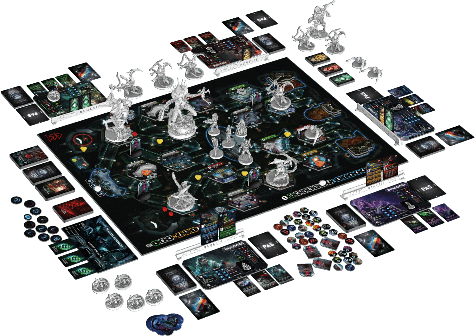 Nemesis to planszowy dreszczowiec idealny dla fanów filmów z serii Obcy. Drużyna graczy będzie musiała pracować razem, blefować i zdradzać się nawzajem, by osiągnąć personalne cele. Wszystkich łączy chęć ucieczki z wypełnionego krwiożerczymi kosmitami statku, jednak niektórzy mogą mieć bardziej złowieszcze zamiary…