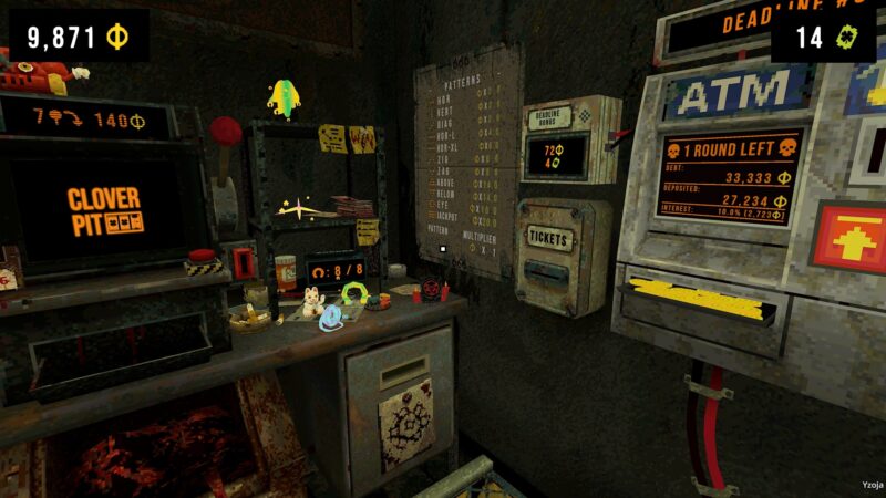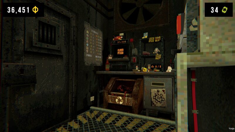 CloverPit to taka gra-koszmarek. Ohydna, całkiem paskudna i o słabej estetyce. Chociaż czego innego moglibyśmy się spodziewać, po zamknięciu w małej celi, gdzie na slotach próbujemy odrobić nasz dług? Jako jedynego kompana mając muchę i kogoś walącego co jakiś czas w metalowe ciężkie drzwi.