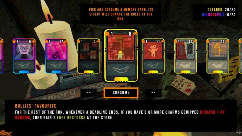 Trochę ciężko wytłumaczyć, jak gra się w CloverPit, bo większość zależy od szczęścia (jak już mówiłam) i od (losowych) modyfikatorów. Gra jest w teorii monotonna, ale o to przecież chodzi. Do przodu pcha nas jednak wizja opuszczenia pokoju, a także prawie 200 talizmanów do odblokowania, 20 kart do zebrania i dodatkowe cele z nimi związane. Ufff. Naprawdę dużo roboty!