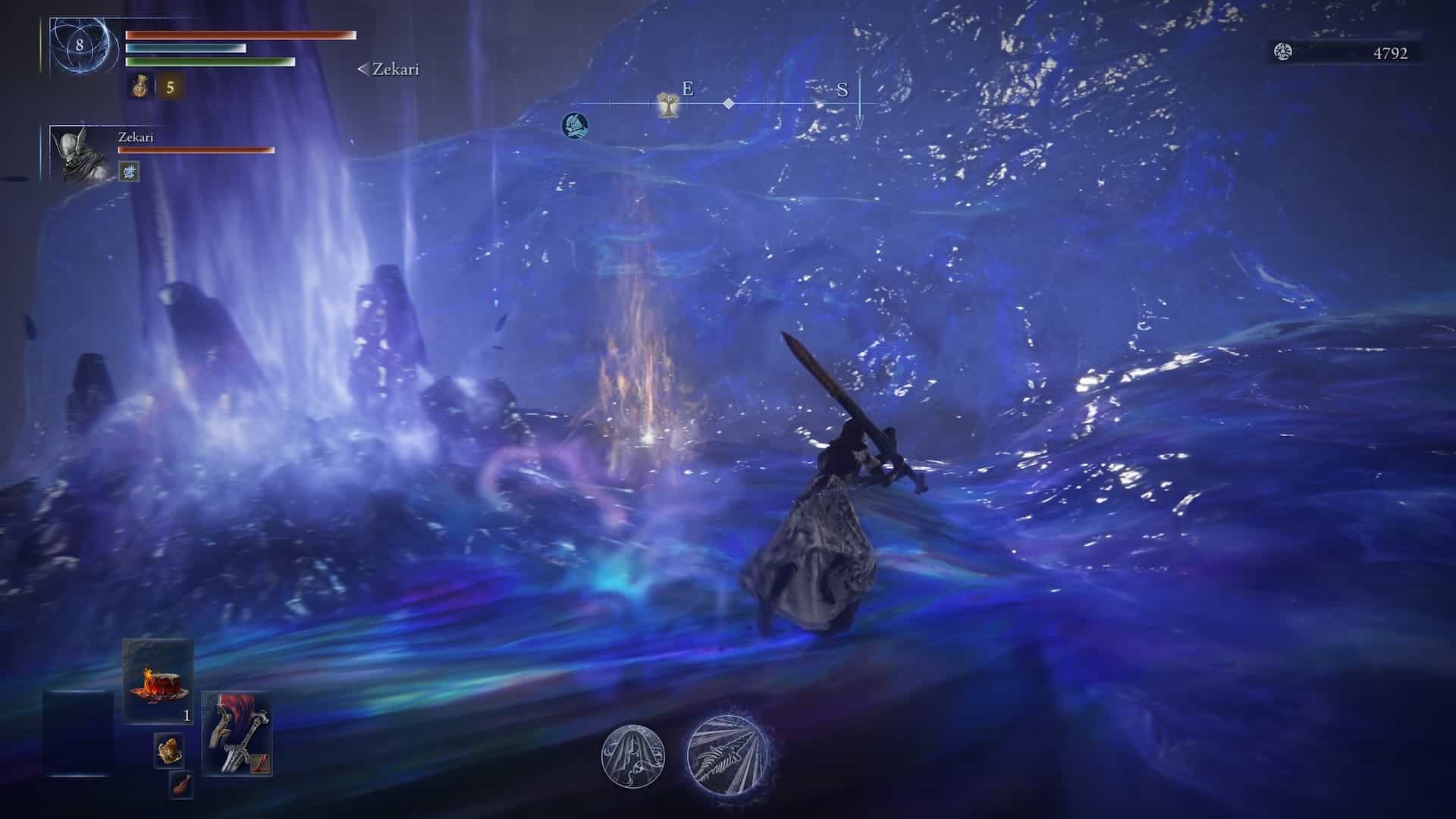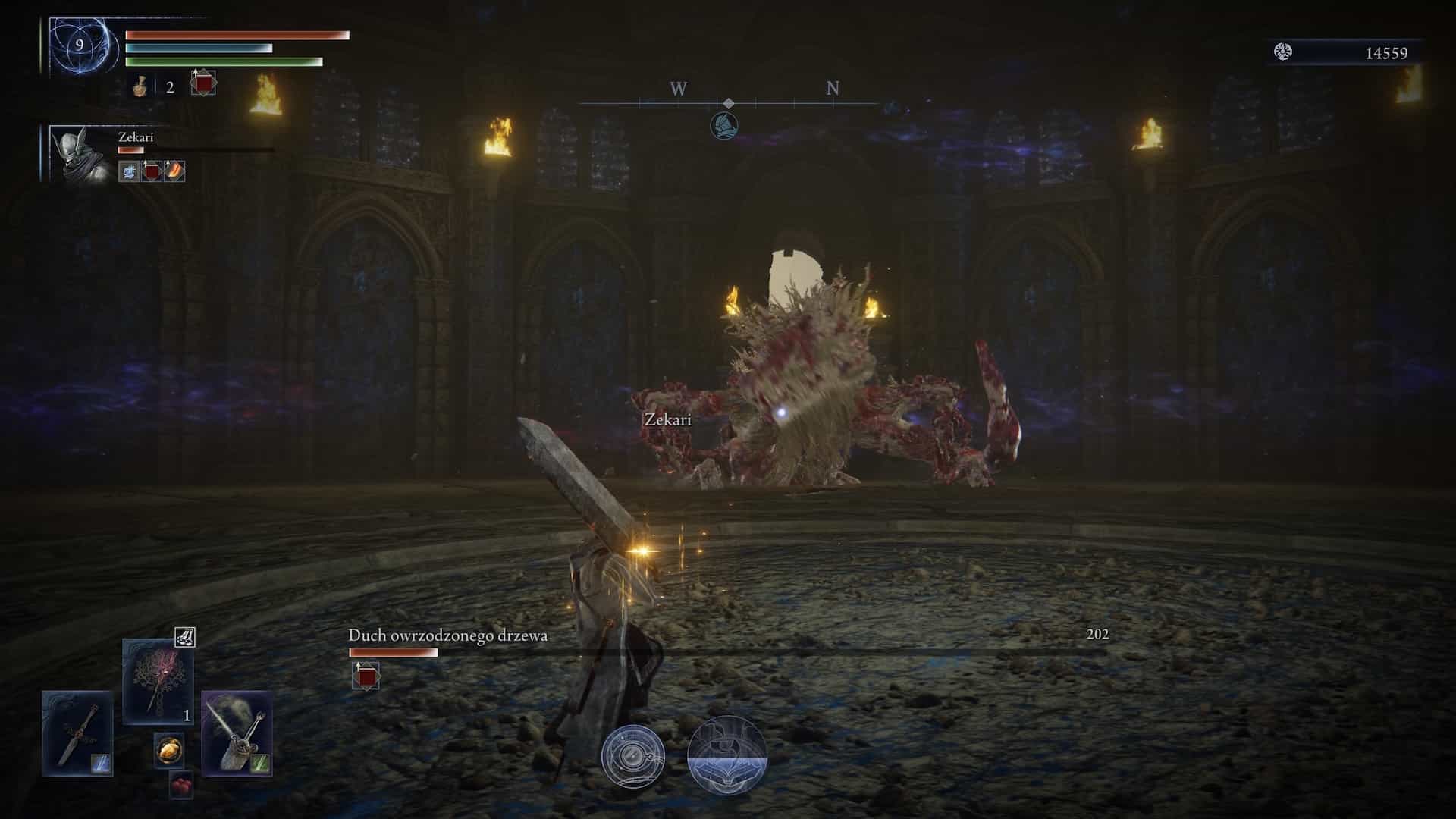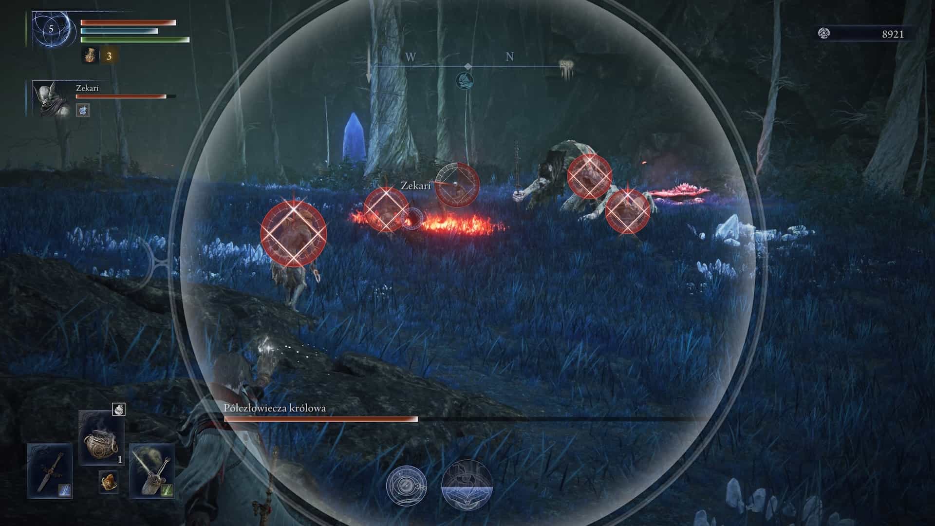 Mamy tu bowiem typowe dla Nightreigna przemierzanie mapy w poszukiwaniu ulepszeń i broni z pomniejszych bossów. Obszar gry stale się zmniejsza, aż nie dojdzie do koła otaczającego arenę starcia z głównym bossem, i tak dwa razy, aż nie dotrzemy do ostatecznego pojedynku. Wielka Pustka jest jednak mapą różniącą się od podstawowego Limveld swoją wertykalnością. Będziemy więc skakać tuż pod sufit i dawać nura do podziemnych krypt opanowanych przez Pająkoskorpiony.