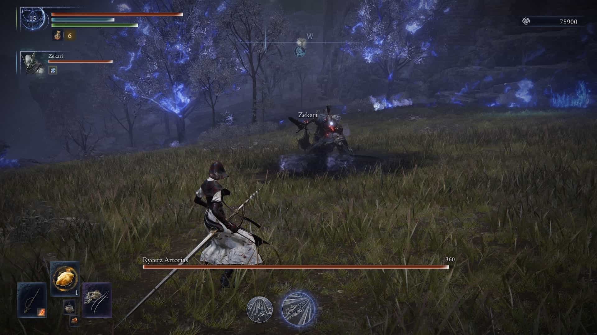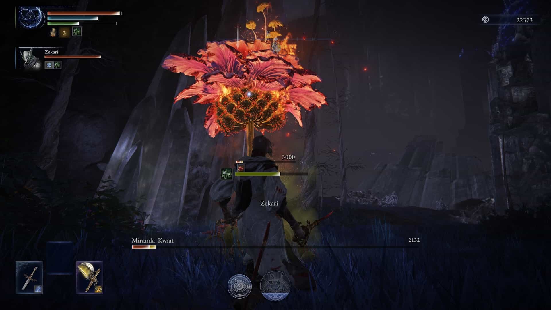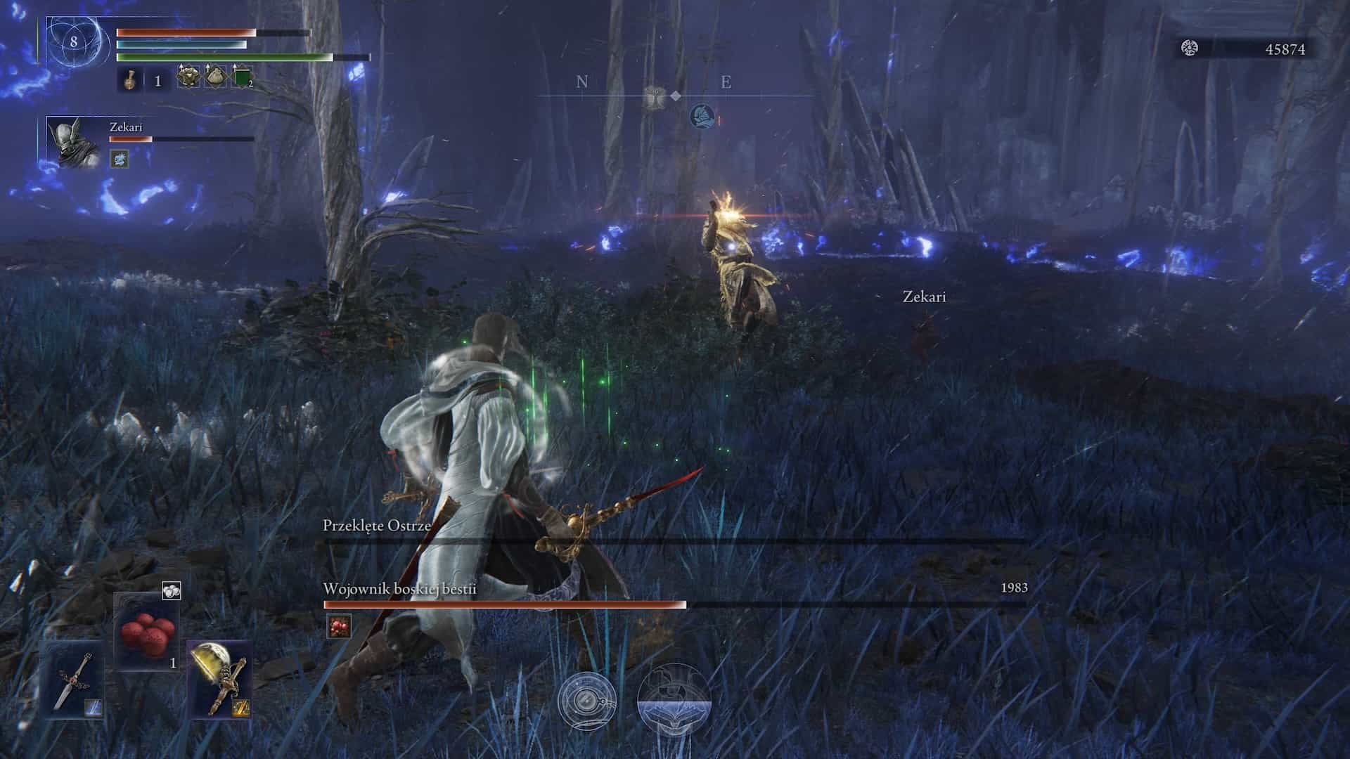 Ta postać jest natomiast dedykowana wsparciu towarzyszy przez rozmaite wzmocnienia, osłabienia, a nawet pętanie wrogów w krąg wspólnych obrażeń. Rozgrywka Uczonym odbywa się bardziej z tyłu akcji, co ciekawie działa zwłaszcza w drużynach trzyosobowych. Osobiście grałem w The Forsaken Hollows w duecie i nawet wtedy postać ta oferowała naprawdę angażującą i odmienną od typowego Nightreigna zabawę.