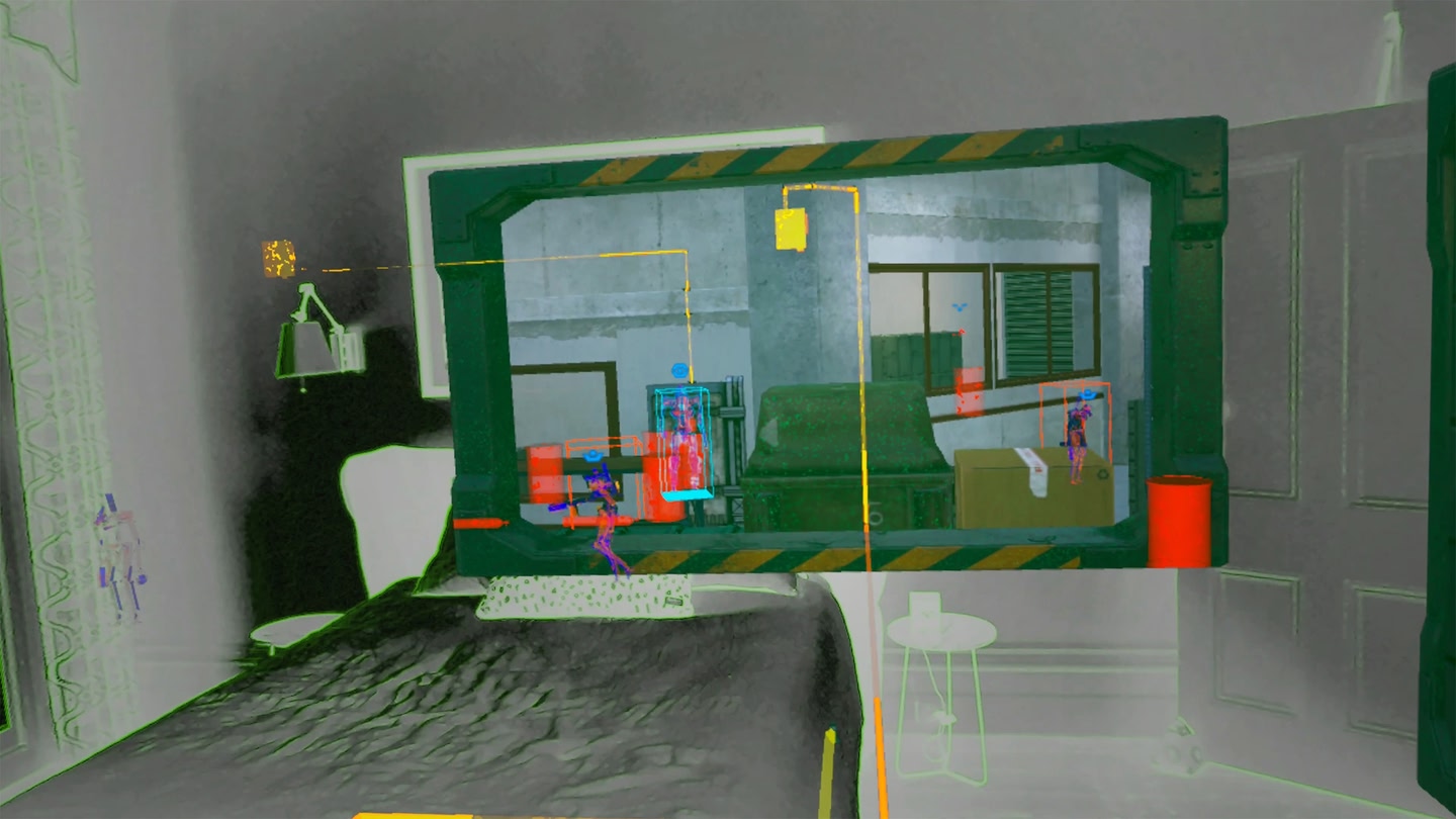 Przede wszystkim należy jasno zaznaczyć jedną kwestię – Espire: MR Missions to produkcja, która wymusza na nas częste poruszanie się w wyznaczonym pomieszczeniu. Nie można grać, stojąc w jednym miejscu, a więc zdecydowanie nie jest to produkcja dla każdego. Gra korzysta z mieszanej rzeczywistości. Już tłumaczę, co dokładnie to oznacza. Na początku, po uruchomieniu gry, skanowany jest nasz pokój. Gogle Meta Quest 3 muszą działać w ramach granicy całopokojowej. Funkcjonowanie sprzętowe skanowania jest bardzo dobre i nie mam do niego najmniejszych zastrzeżeń. Gogle na ogół poprawnie wykrywają ewentualne przeszkody w naszym otoczeniu i je oznacza. Naturalnie nie ma też przeszkód, by samemu dodać przeszkody i odpowiednio je oznaczyć. Sprzętowo działa to świetnie, ale niestety nie mogę tego samego niestety napisać również w kontekście recenzowanej dziś gry.