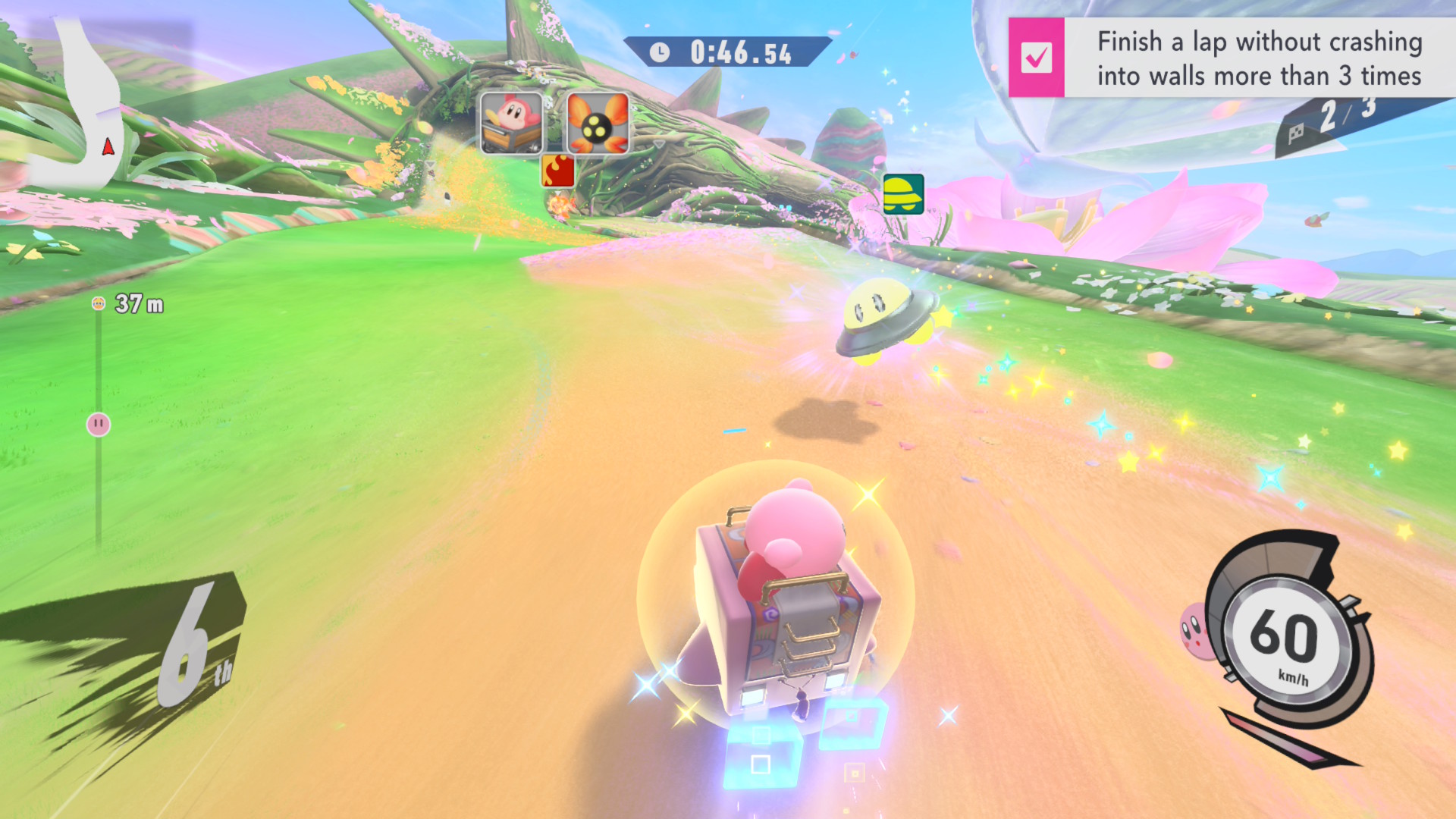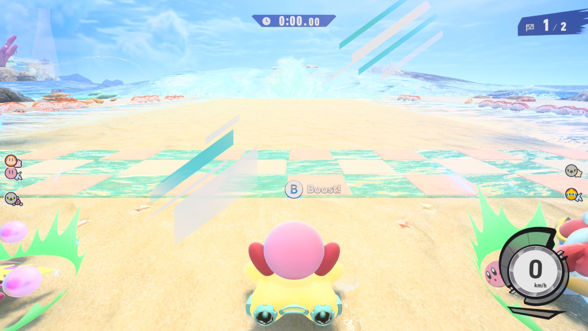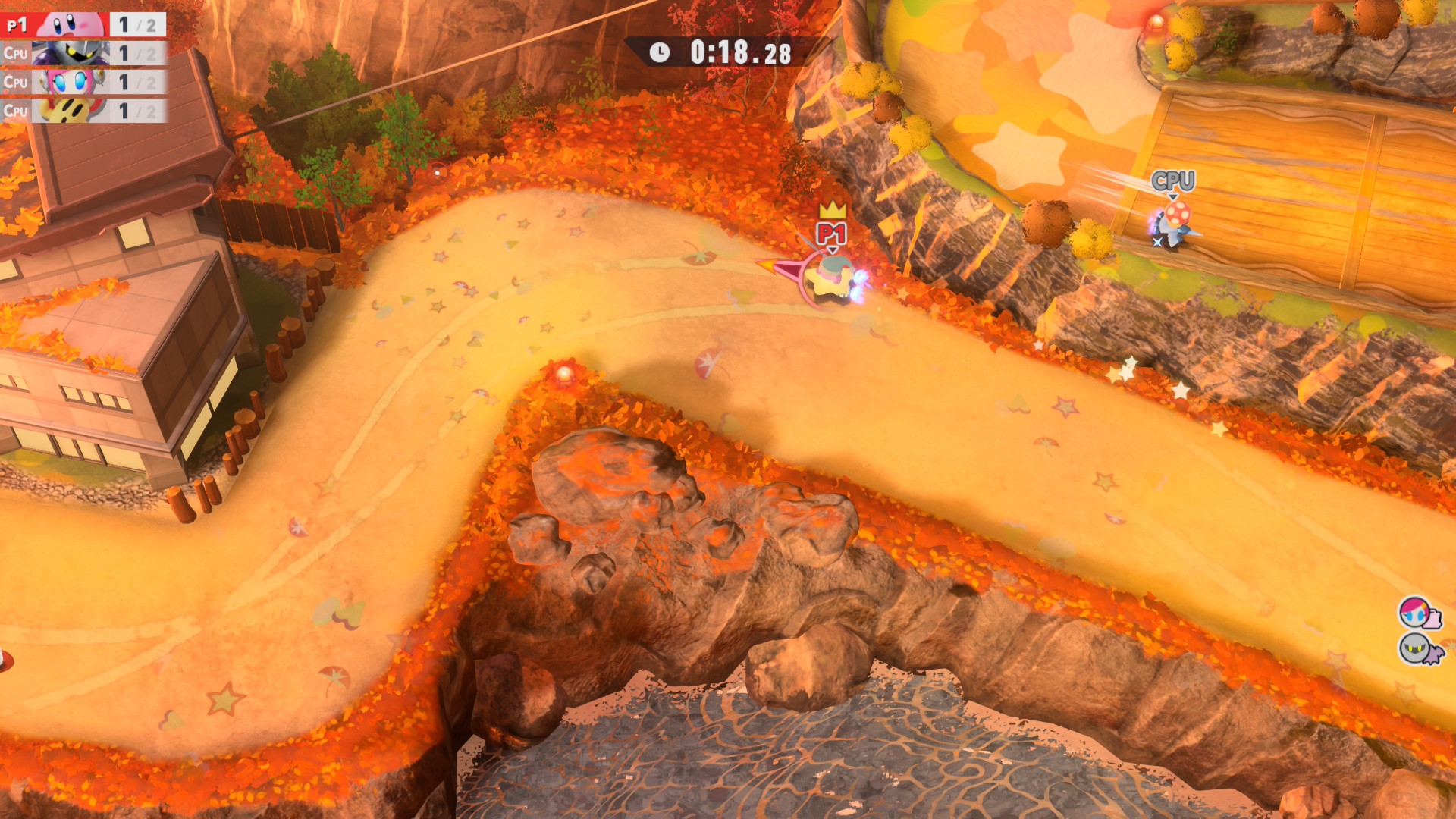 Trasy nie są wolne od zagrożeń. Oprócz rywalizujących zawodników spotkamy na nich również przeciwników, typowych dla gier z Kirby’m. Zgodnie z tradycją serii, możemy ich wciągnąć i połknąć, a następnie wystrzelić jako pocisk w kierunku poprzedzającego nas gracza. Po naładowaniu specjalnego paska energii otrzymujemy dostęp do ataku specjalnego. Nie tylko dodaje nam prędkości, ale także atakuje wszystkich znajdujących się w pobliżu.