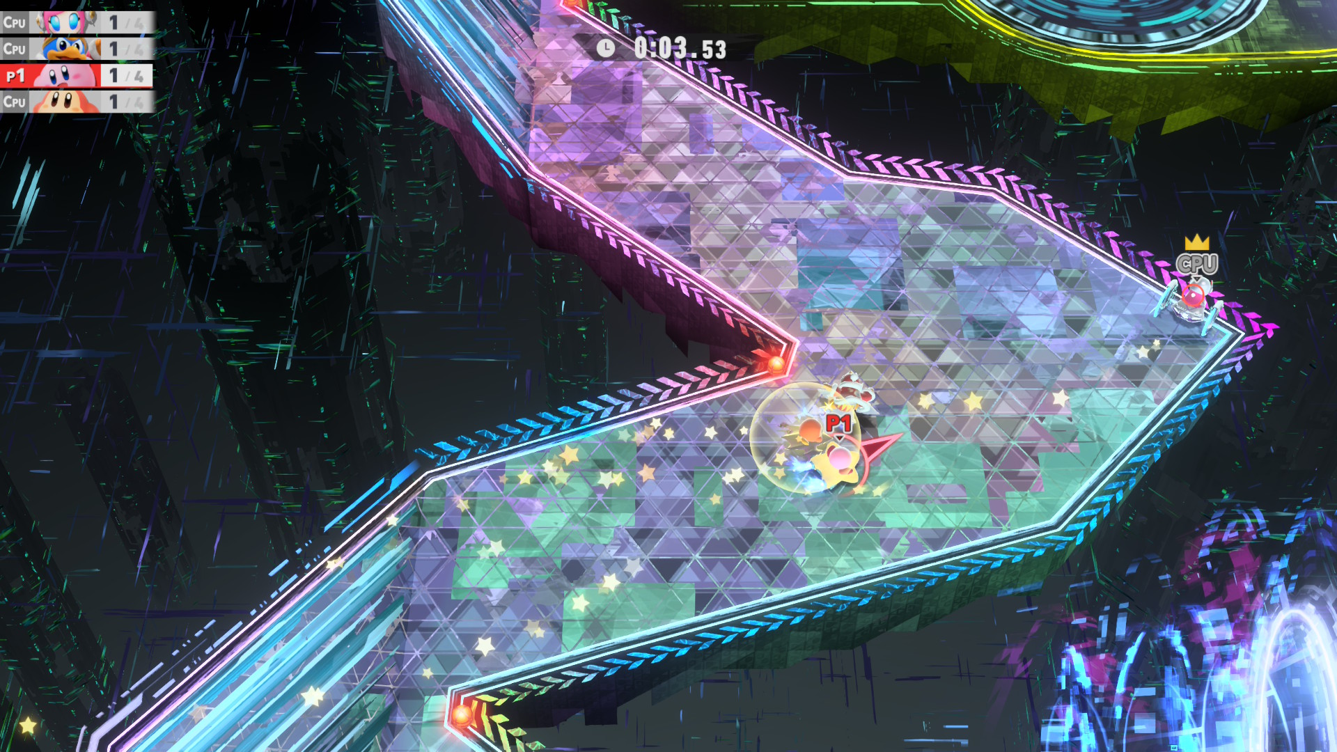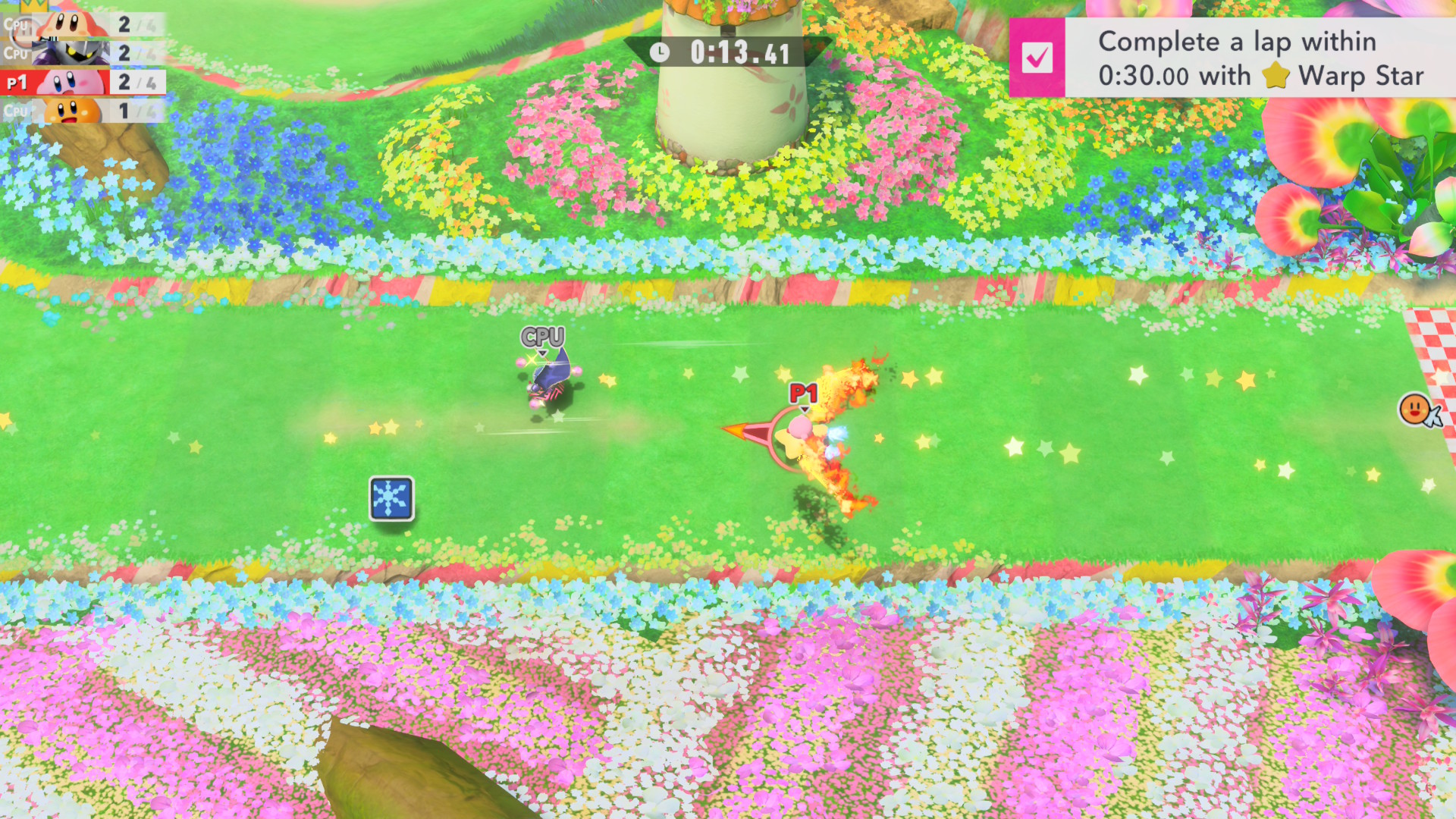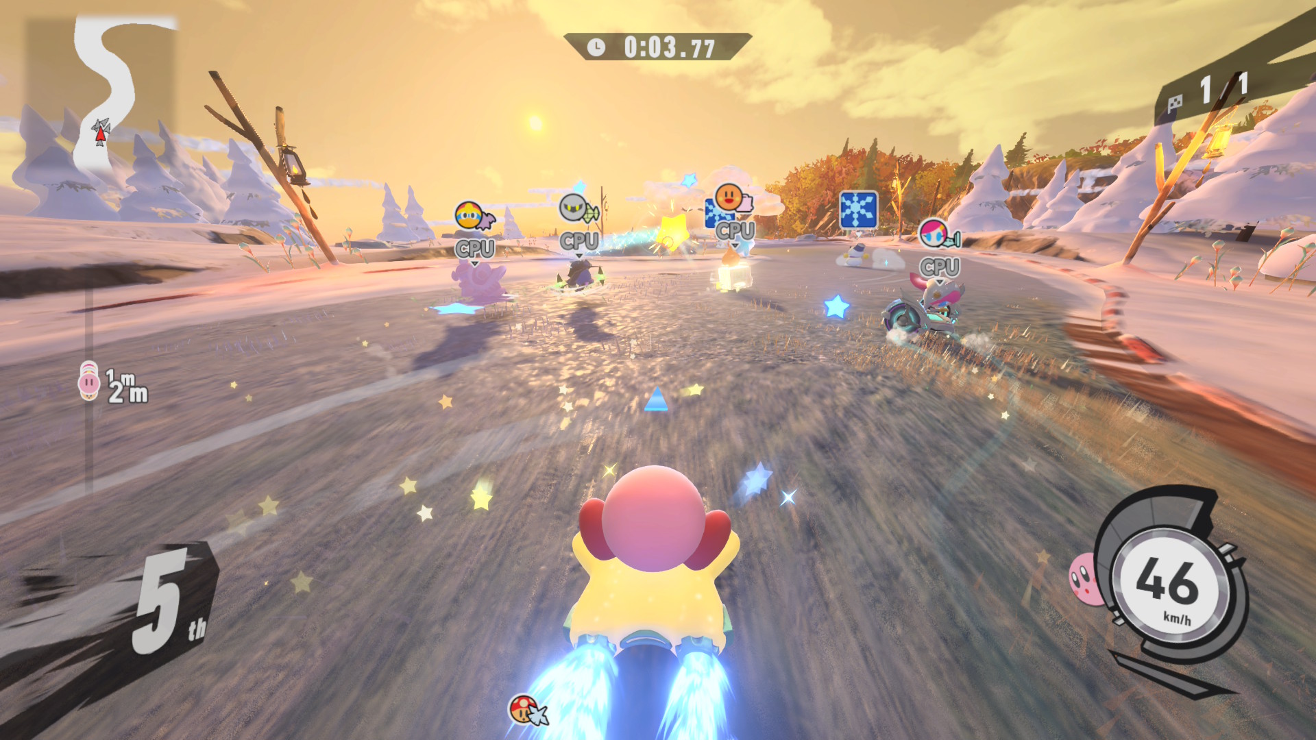 Trasy nie są wolne od zagrożeń. Oprócz rywalizujących zawodników spotkamy na nich również przeciwników, typowych dla gier z Kirby’m. Zgodnie z tradycją serii, możemy ich wciągnąć i połknąć, a następnie wystrzelić jako pocisk w kierunku poprzedzającego nas gracza. Po naładowaniu specjalnego paska energii otrzymujemy dostęp do ataku specjalnego. Nie tylko dodaje nam prędkości, ale także atakuje wszystkich znajdujących się w pobliżu.