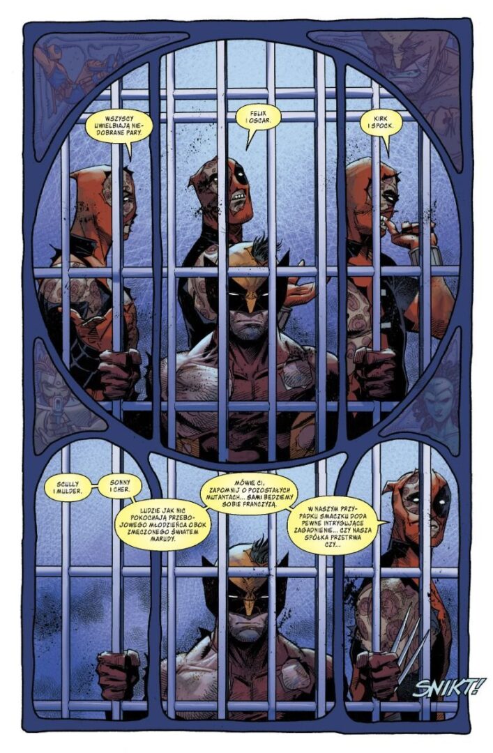 Trzeci zeszyt, czyli tak naprawdę #22 zmienia ton dzięki duetowi z Deadpoolem. Humor i autoironia przełamują mrok serii, oferując jeden z najlżejszych zeszytów w pierwszym tomie. To znakomity punkt wejścia. Relacja bohaterów działa nawet bez głębokiej znajomości kontekstu. Wolverine #23 wiąże serię z eventem A.X.E.: Judgement Day. Skala narracji rośnie, ale przystępność spada. Niestety bez znajomości historii tego wydarzenia część emocjonalnych stawek może umknąć nowym czytelnikom.