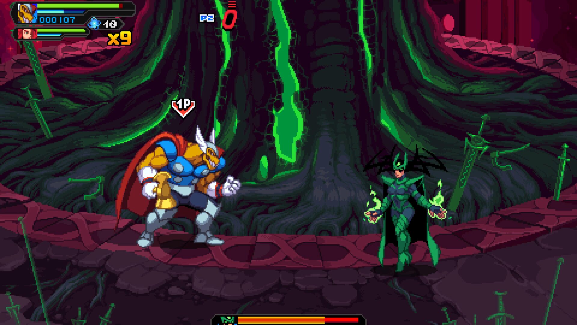 Gra wyraźnie błyszczy w kooperacji, zwłaszcza lokalnej. Ekran momentami zamienia się w totalny chaos, ale w ten przyjemny, świadomie zaprojektowany sposób, w którym dzieją się rzeczy głupio spektakularne i trudno przestać się śmiać. W jednej osobie gra również działa, ale tempo potrafi być wtedy odczuwalnie spokojniejsze. Niektóre starcia są stworzone z myślą o kilku graczach i pojedynczy gracz nie wyciąga z nich pełnego potencjału.