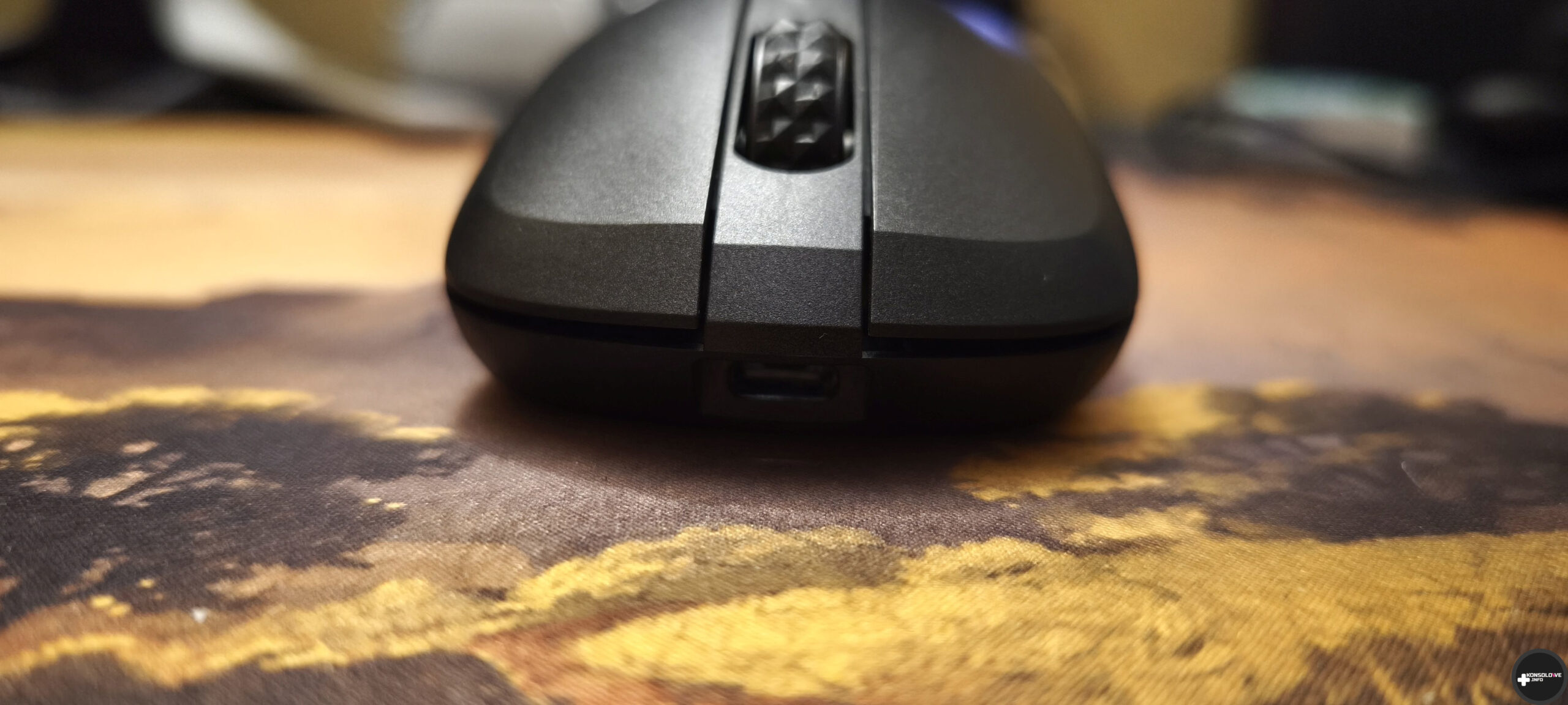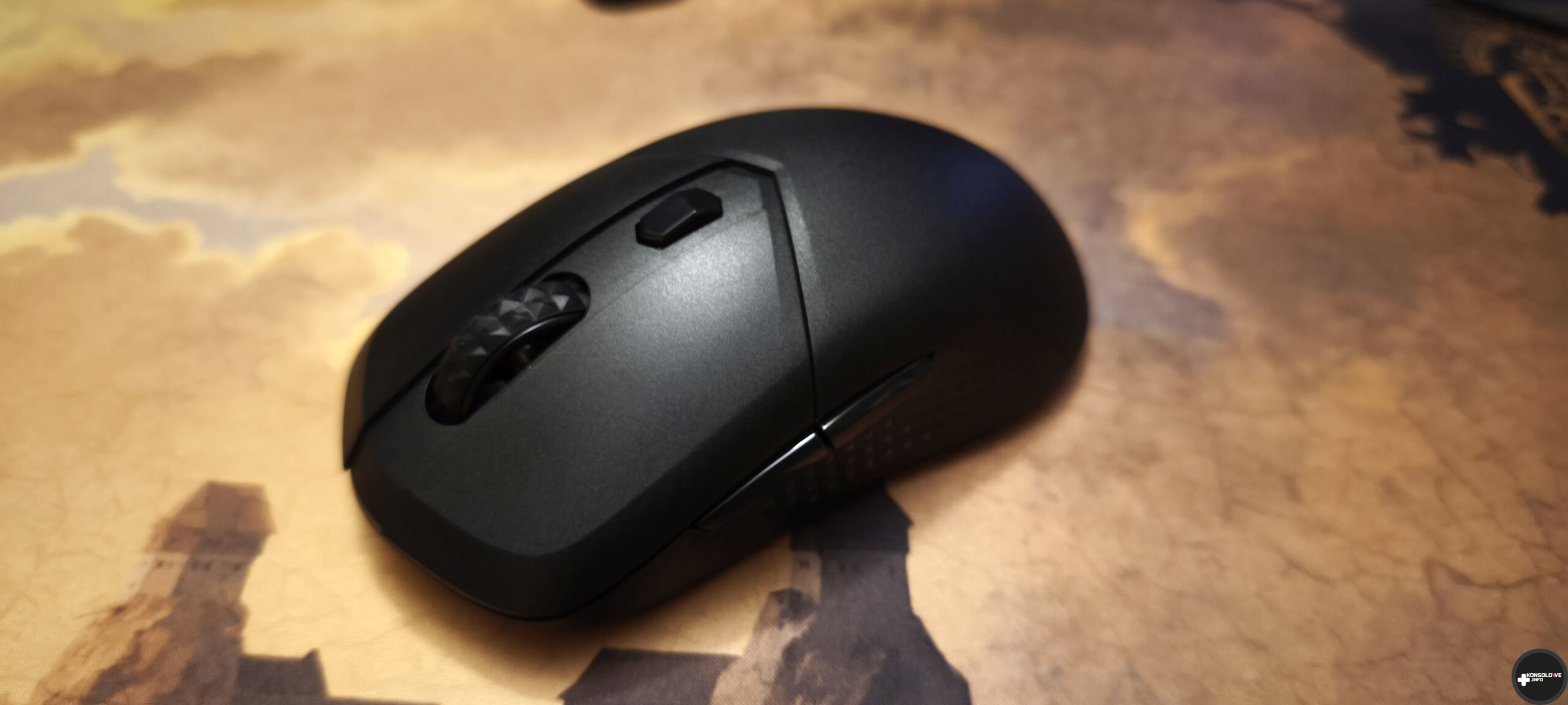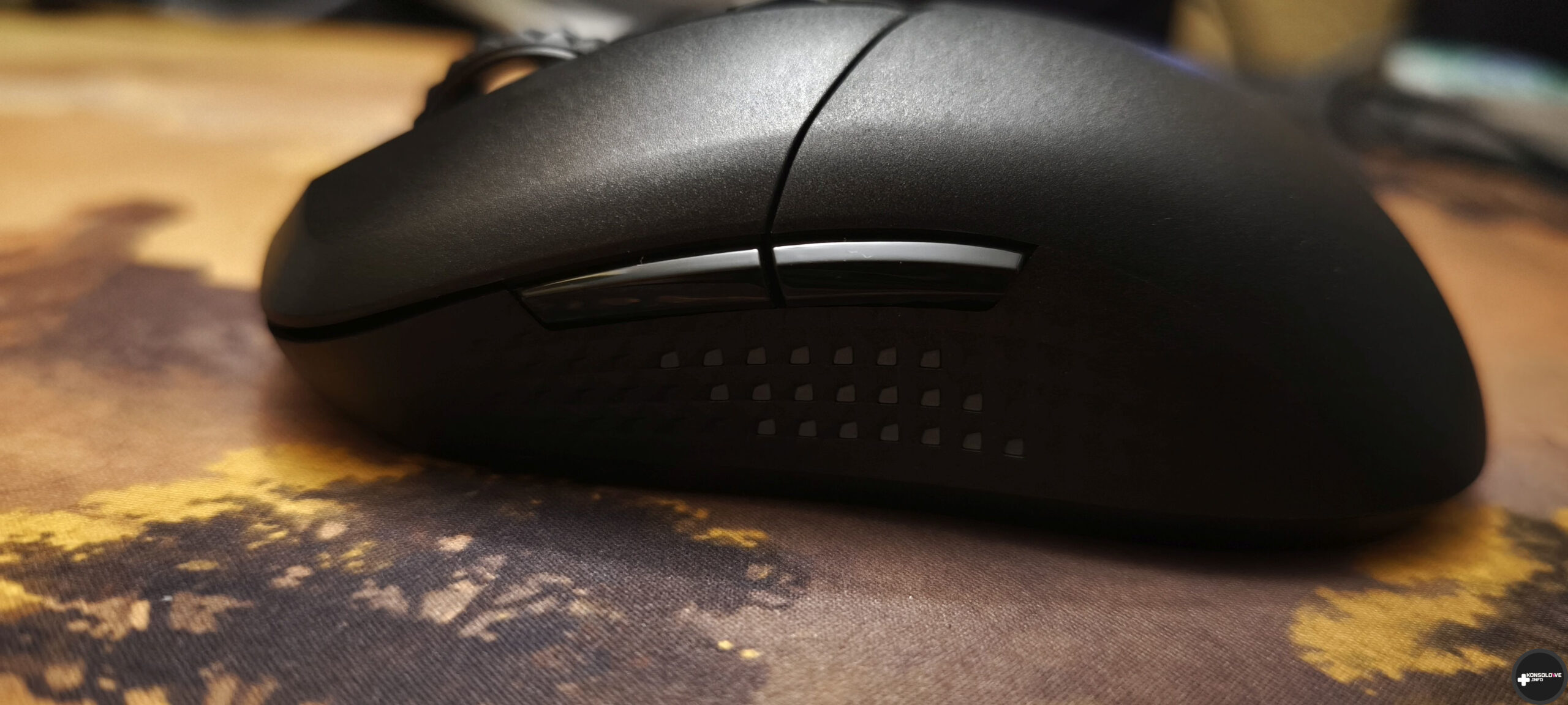 Na bokach myszki zamontowano też teksturowane gripy, które ogromnie zwiększają przyczepność akcesorium. Nawet długie sesje z sieciowymi strzelankami czy pierwszoobowymi grami akcji, w których często dostosowujemy kamerę (na przykład w moim ukochanym Cyberpunku 2077) nie stanowią żadnego problemu. Korzystanie z myszki jest niesamowicie wygodne i jest to w moim przekonaniu jedna z największych zalet tego produktu. Warto też wspomnieć, że można oczywiście korzystać z tej myszki wygodnie z różnego rodzaju stylem trzymania – między innymi pazurowym oraz całą dłonią. Mnie najwygodniej i najbardziej naturalnie korzystało się z tego drugiego.