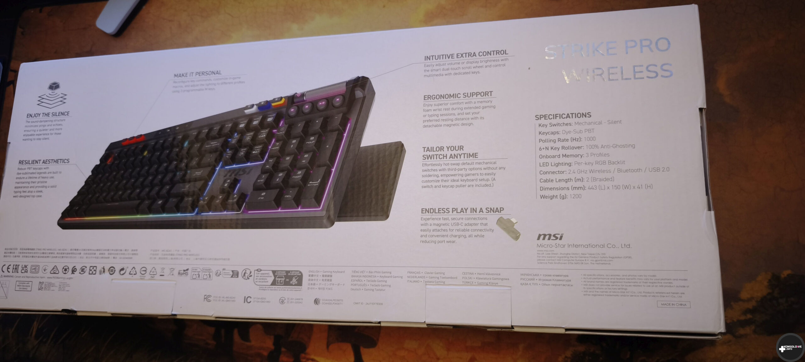 Nie sposób nie zgodzić się, że klawiatury mechaniczne cieszą się niemałą popularnością. Odznaczają się one bardzo przyjemnym skokiem klawiszy, który doceniają zarówno gracze, jak i twórcy treści internetowych. „Mechaniki” mają też – w moim przekonaniu – jedną bardzo istotną wadę. Mianowicie są często niesamowicie głośne. O ile sam mogę jakoś to przeboleć – i tak na ogół piszę albo gram, korzystając ze słuchawek – o tyle na przykład moja żona nie jest miłośniczką mojego pisania na klawiaturze mechanicznej. Co prawda nadal jestem bardzo zadowolony z propozycji od firmy Trust – którą recenzowałem w tym miejscu – niemniej jednak chętnie sprawdziłbym też cichszy wariant. Z odpowiedzią na takie zapotrzebowanie przychodzi MSI, oferując swój model określony jako Strike Pro Wireless. Najpierw przyjrzę się oczywiście opakowaniu i muszę przyznać, że jest tu bardzo podobnie, co w przypadku opisywanej dziś myszki.