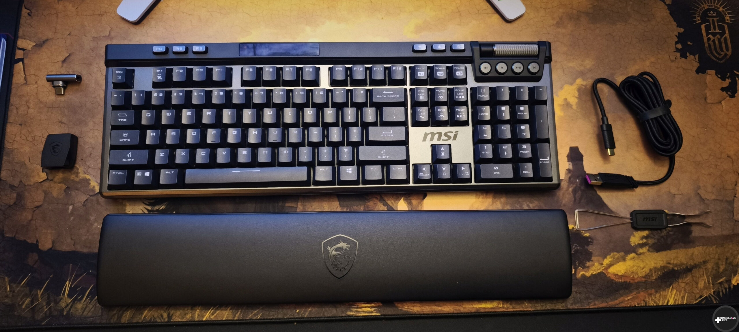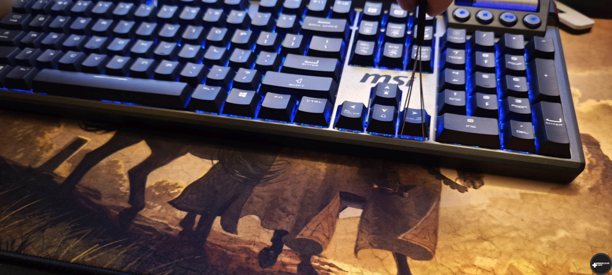 Może się to przydać również podczas czyszczenia sprzętu. Warto zaznaczyć, że wymiana przełączników absolutnie nie wymaga lutowania. Jest ona typu hot swap, za co MSI dostaje ode mnie ogromnego plusa. Przełączniki, jakie tu znajdziemy to Kailh Midnight Pro Silent Tactile. Ich siła aktywacji wynosi 45 gf, pre-travel to 1,9 mm, całkowity skok – 3,7 mm, natomiast deklarowana trwałość to aż 70 milionów uderzeń.