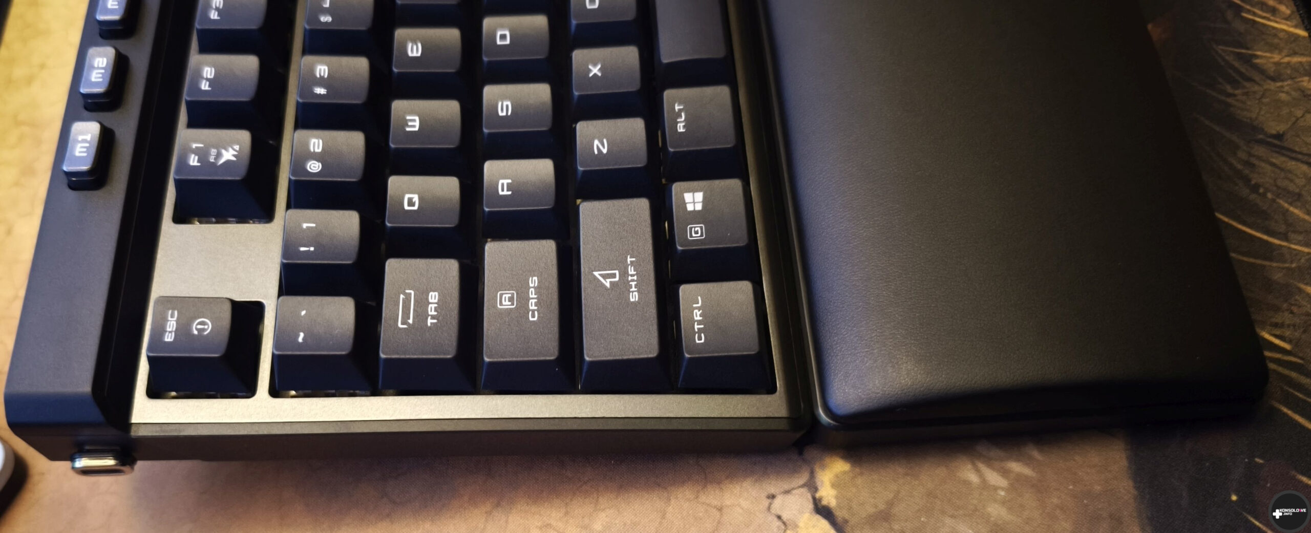 Dołączałem też podkładkę pod nadgarstki, która jest niesamowicie wygodna i przede wszystkim wykonana z pianki pamięciowej. Przyznaję, że moim zdaniem istotnie wpływa ona na komfort użytkowania klawiatury/ Nie zawaham się stwierdzić, że to najwygodniejsza podkładka pod nadgarstki, z jakiej kiedykolwiek korzystałem. Jest tak wygodna, że korzystałem z niej – samej, bez klawiatury – nawet podczas grania na PS5 padem (przede wszystkim w NHL 26 (Go Habs!)).