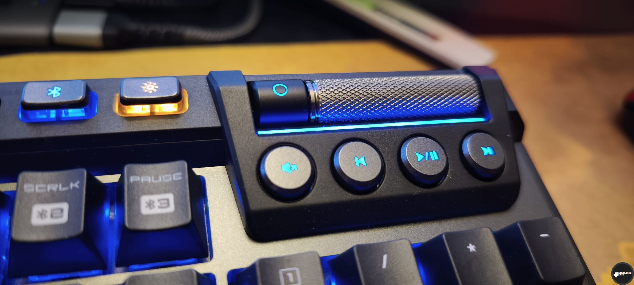 No dobrze, ale sprawdźmy też działanie i wykonanie klawiatury. Pierwszym odznaczającym się elementem jest w moim przekonaniu rolka po prawej górnej stronie panelu. Dzięki tej rolce możemy – zależnie od trybu – przesuwać stronę w dokumencie albo przeglądarce, czy zwiększać głośność. Zresztą do sterowania multimediami służy też pakiet 3 klawiszy – pauza/odtwarzanie, wyciszenie oraz poprzednie/następne. Dzięki tym przyciskom możemy bardzo wygodnie zmieniać odtwarzane nagrania na YouTubie (co bardzo mi się spodobało, jako że od kilku tygodni namiętnie słucham kawałków Przewianych Indyków), czy momentalnie wyciszyć odtwarzaną treść. Jest to dużo wygodniejsze i szybsze rozwiązanie niż szukanie odpowiedniej ikony w menu Windowsa czy przełączanie karty w przeglądarce lub szukanie na niej ikony głośnika. Bardzo przydawało się to, kiedy żona chciała cos do mnie powiedzieć. Szybko wyciszałem lub zatrzymywałem piosenkę i już mogłem słuchać żony.