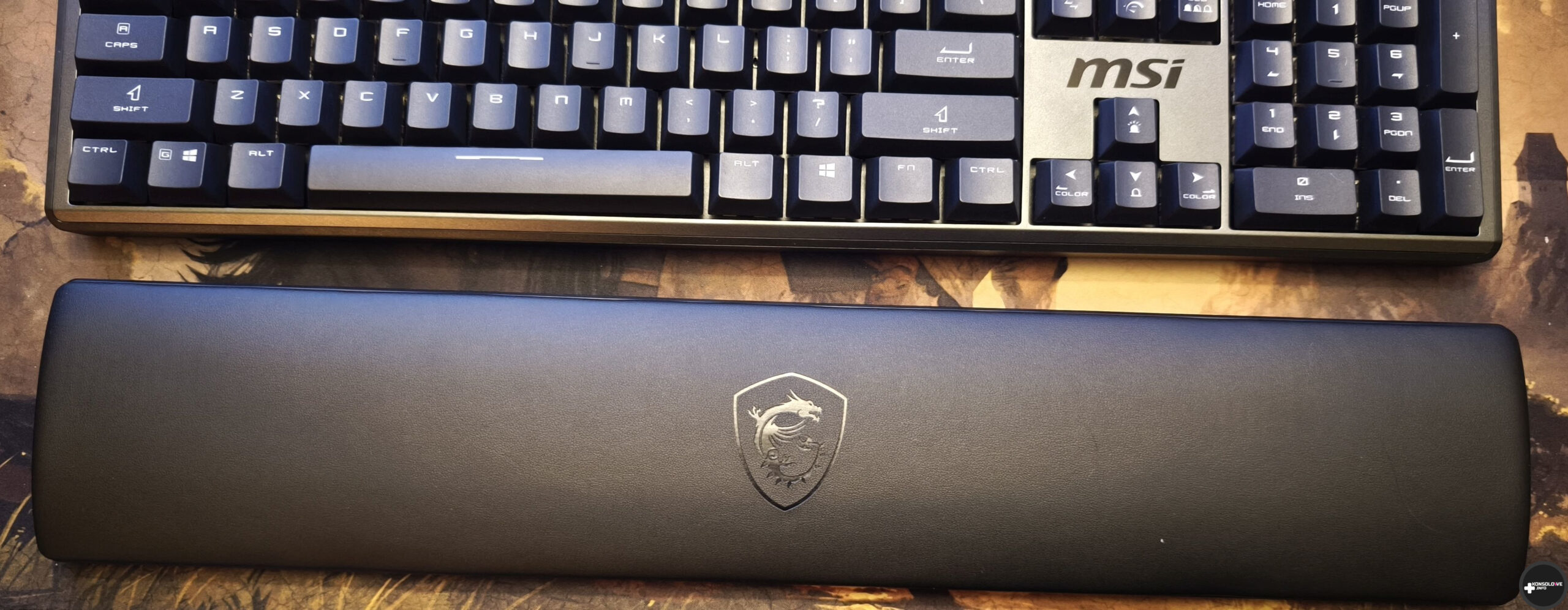 Tu bynajmniej nie kończy się magnetyczność klawiatury. Wspomniałem wcześniej, że MSI dołącza do tego sprzętu podkładkę pod nadgarstki. Co ważne, jest ona magnetyczna. Nie ma więc najmniejszego problemu w usunięciu jej z klawiatury gdy potrzebujecie więcej miejsca na biurku. Ja na przykład często odkładałem klawiaturę wraz z podkładką na bok, kiedy układałem na biurku LEGO Arkham Asylum. Na monitorze otwierałem plik z instrukcją składania modelu, a klawiatura nie ograniczała mi pola manewru. Natomiast po dokończeniu danej fazy budowania kładłem klawiaturę z powrotem na biurku. Jako że jest bezprzewodowa, to nie musiałem się plątać z żadnym kablem.