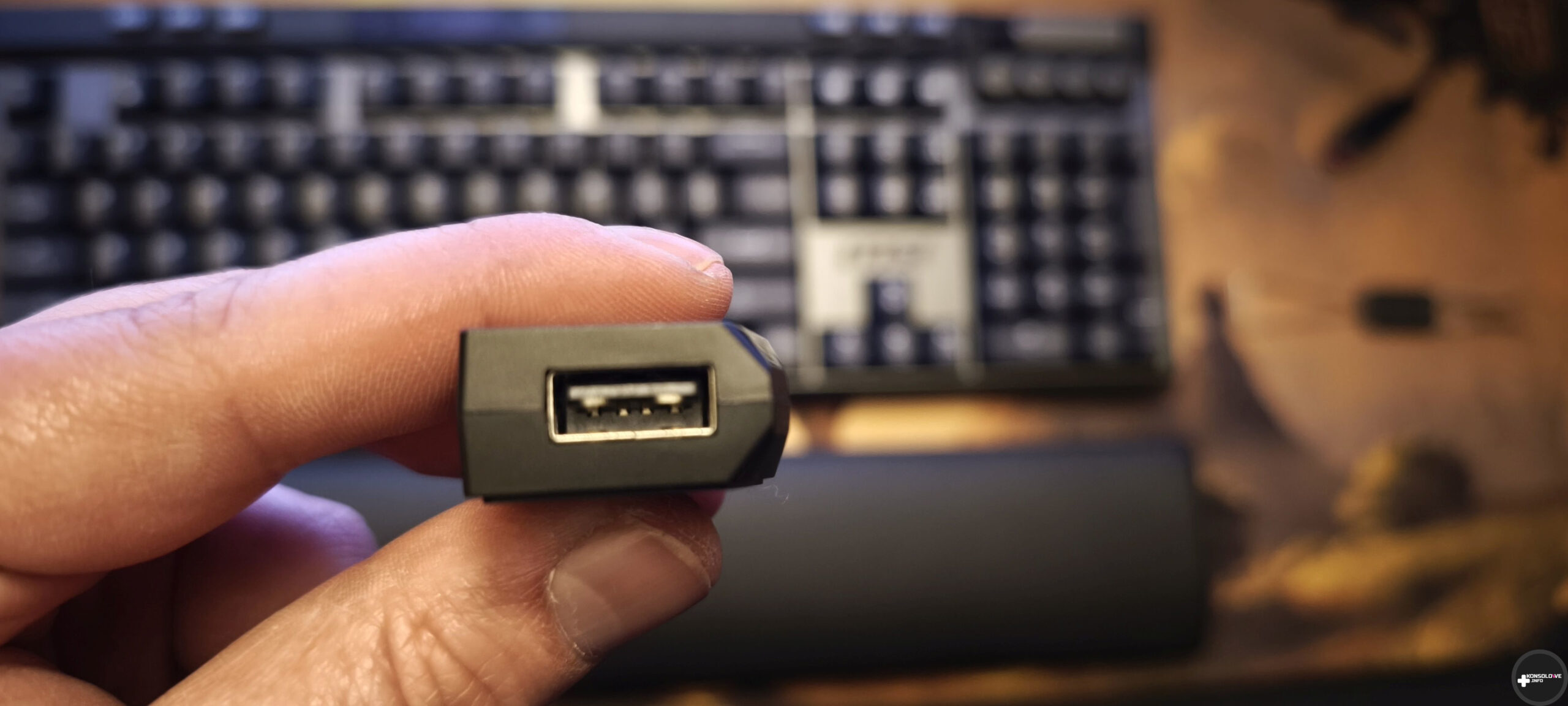 Możecie być pewni, że po zdjęciu odpowiedniej pokrywy dongle wyleci z dedykowanego mu miejsca. Warto byłoby to dopracować. Podobają mi się natomiast przełączniki OMRON. Producent deklaruje ich wytrzymałość na poziomie 60-70 milionów kliknięć. To bardzo dobry wynik i pozytywnie rokuje w kontekście perspektywiczności zakupu tego sprzętu. Klik ma też wyraźny krótki skok, a jednocześnie jest dość cichy – pod tym względem nie mam się do czego przyczepić.