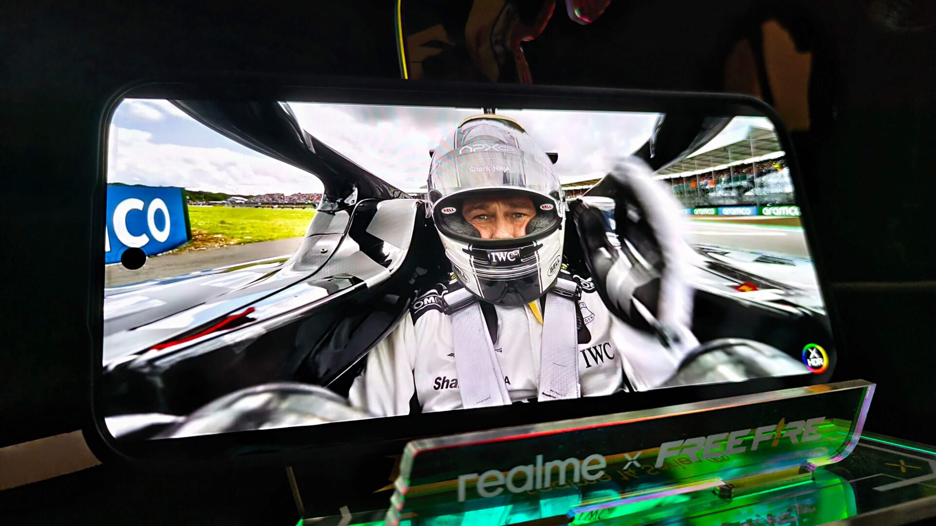 Dream Edition od pierwszej chwili sprawia wrażenie, jakby przejechał przez tunel aerodynamiczny Astona Martina. Tył urządzenia wyprofilowano tak, by światło załamywało się niczym na karbonowych panelach bolidu. Minimalistyczny moduł aparatów przypomina zintegrowaną osłonę airboxu, a smukłe ramki wyglądają jak precyzyjnie szlifowane elementy zawieszenia. Ciemne metaliczne odcienie przywodzą na myśl bolidy w czasie nocnych Grand Prix. Subtelne refleksy zdają się pulsować niczym LED-y od obrotów silnika na kierownicy samochodu wyścigowego.