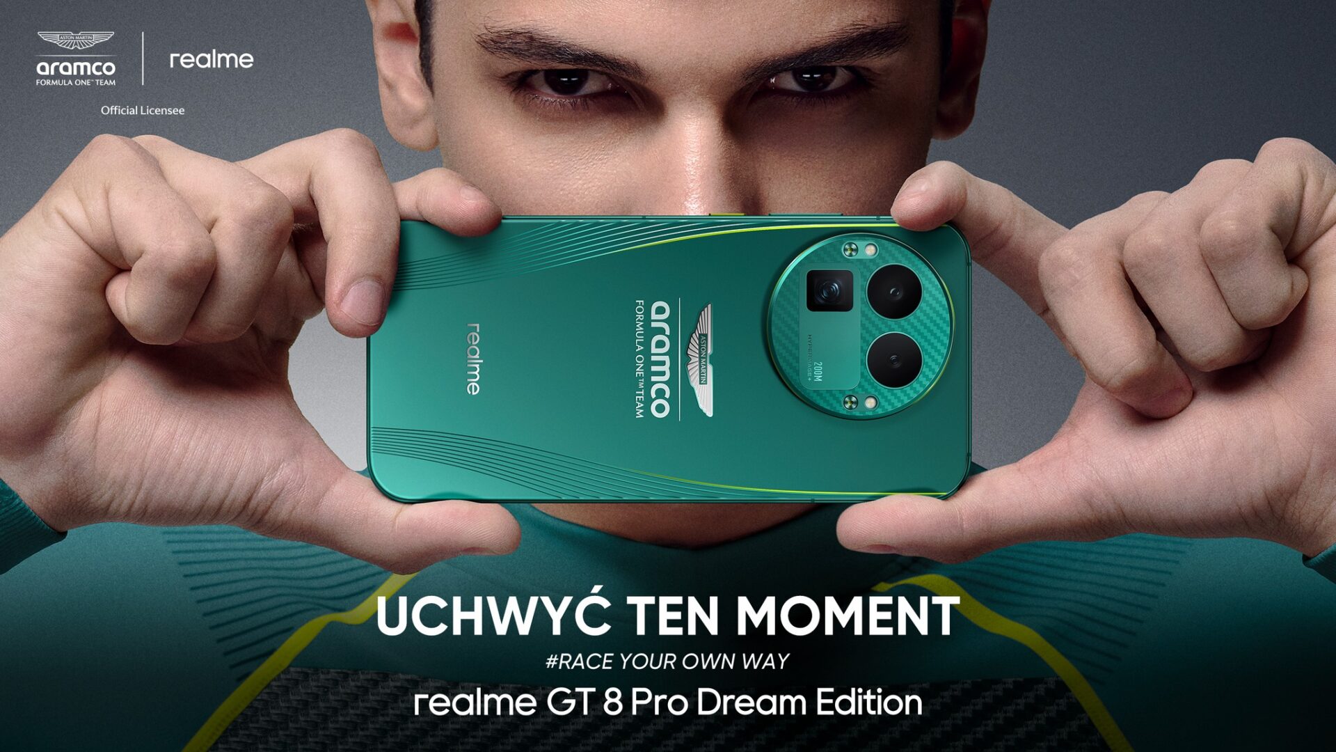 Jeżeli w waszych żyłach również płynie wysokooktanowa benzyna, to z pewnością nie przejdziecie obok realme GT 8 Pro Dream Edition. To już drugi owoc współpracy marki realme z zespołem Aston Martin Aramco F1 Team. Owoc, który jest drogi, jak bilety na wyścig w Las Vegas. Debiutujący dziś Dream Edition wyceniono bowiem na 5500 zł. Standardowy wariant jest 1000 zł tańszy, ale umówmy się, bycie fanem F1 do standardowych hobby nie należy. My nie będziemy chodzić w zwykłej czarnej czapce z daszkiem. My dopłacimy 500 zł, aby ta czapka miała logo ulubionego zespołu F1. Oczywiście możemy kupić sobie na Temu plecki do smartfona z motywem F1, ale nadal pod nimi będziemy mieć zwykły smartfon, który niczym się nie wyróżnia. Na szczęście dzięki firmie realme nastąpił koniec szarych, zwykłych smartfonów w kieszeniach fanów F1. Dzięki realme GT 8 Pro Dream Edition zawsze będziesz mieć przy sobie cząstkę DNA królowej motosportu.