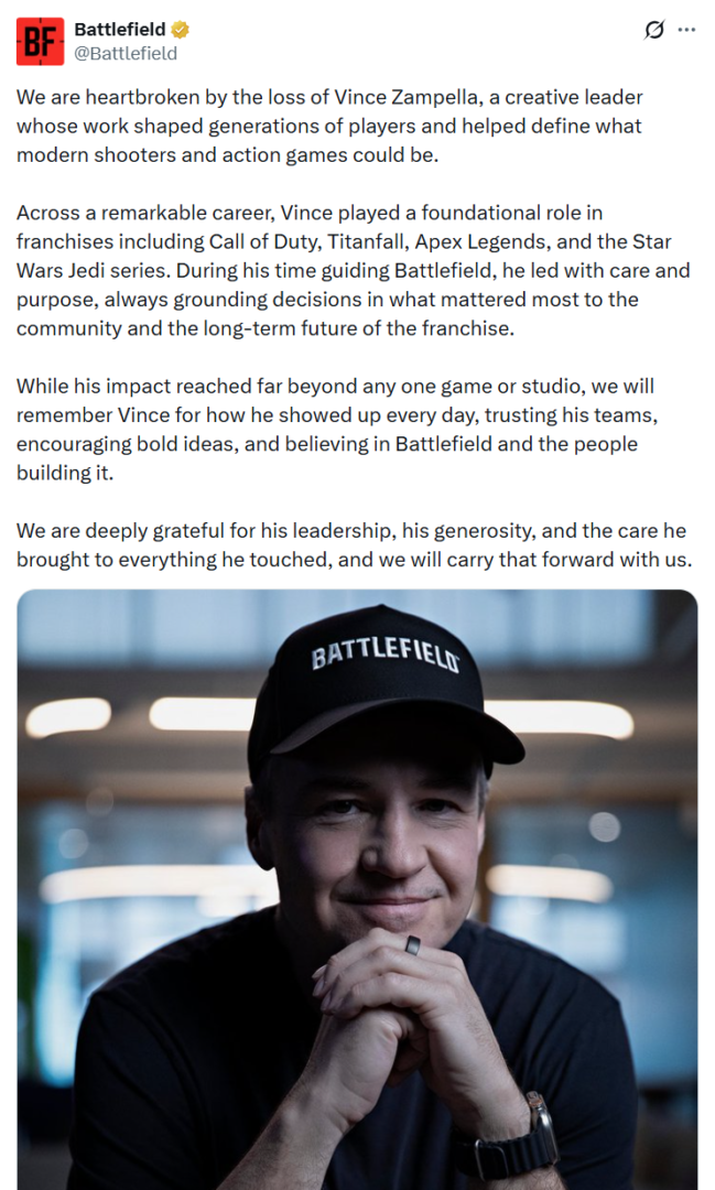 Vince Zampella to legenda świata gier. Od lat zajmował się on najważniejszymi strzelankami, które pokochały miliony graczy na całym świecie. Jednym z pierwszych jego projektów był Medal of Honor: Allied Assault w 2002 roku. Pod jego kierownictwem powstawała też seria Call of Duty, a także później, już po stronie EA, Titanfall czy Apex Legends.