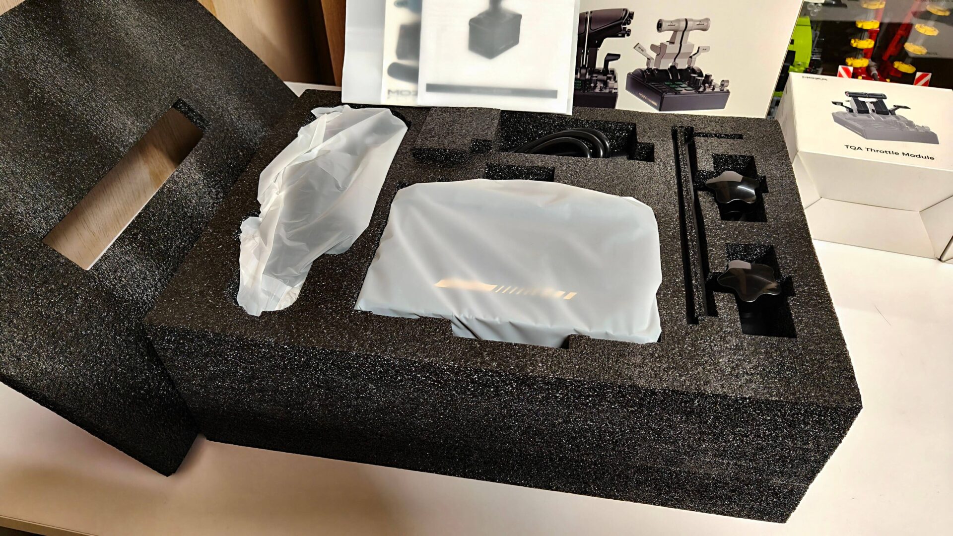 Topowy zestaw do symulatorów lotów nie może obyć się bez porządnej przepustnicy. A do takich bez wątpienia należy MOZA MTQ Throttle Quadrant. To z całkowitą pewnością jeden z najlepszych modułów przepustnicy, z jakiego miałem okazje korzystać. Znajdziemy tu wszystkie niezbędne dźwignie, przyciski i przełączniki do sterowania samolotem oraz jego automatyką. Do tego wszystkie cztery dźwignie, czyli dwie przepustnice, klapy i spoilery są wymienne. Standardowo w pudełku znajdziemy zestaw od myśliwców, jednak bez problemu w sklepie MOZA w cenie 45 euro możemy dokupić dźwignie inspirowana samolotami Airbusa (MOZA TQA), czy Boeinga (MOZA TQB).