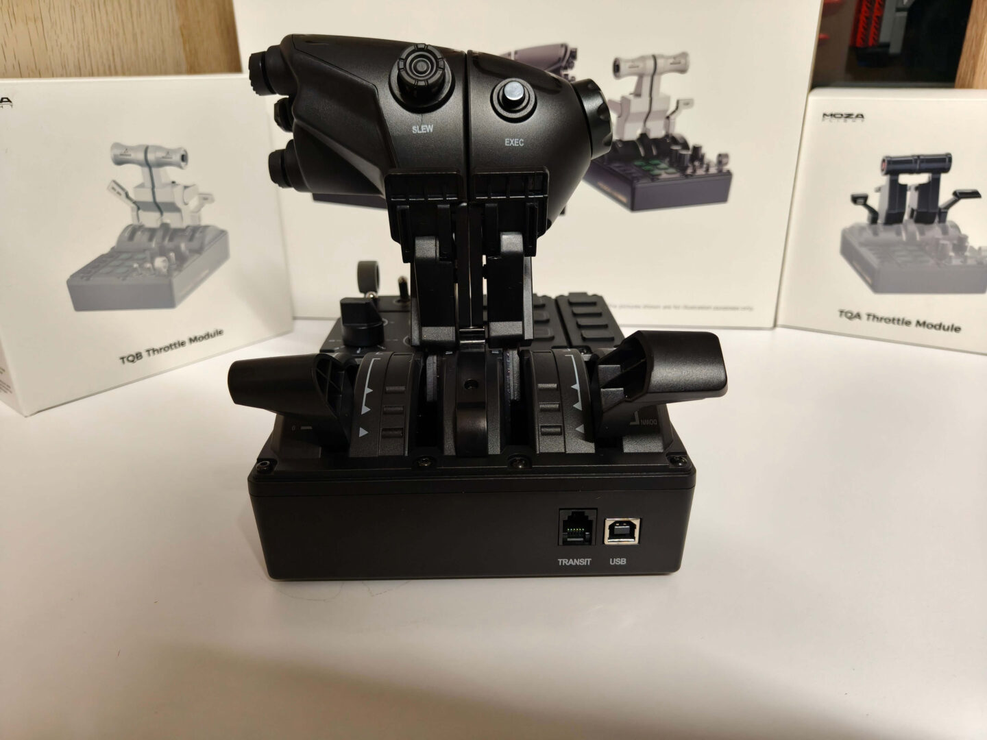 Bazę MOZA AB6 możemy połączyć bezpośrednio z modułem przepustnicy MTQ Throttle za pomocą dołączonego kabla RJ11. Wtedy w komputerze wykorzystamy tylko jedno gniazdo USB. Jednak z własnego doświadczenia osobiście wole podłączać wszystkie urządzenia osobno do PC, aby uniknąć dublowania urządzeń w grach. Testowany zestaw działa z takimi grami na PC, jak: MSFS 2020/2024, X-Plane 12/11/10, DCS, IŁ-2 oraz War Thunder. Niestety Ace Combat 7 nie jest obsługiwany.