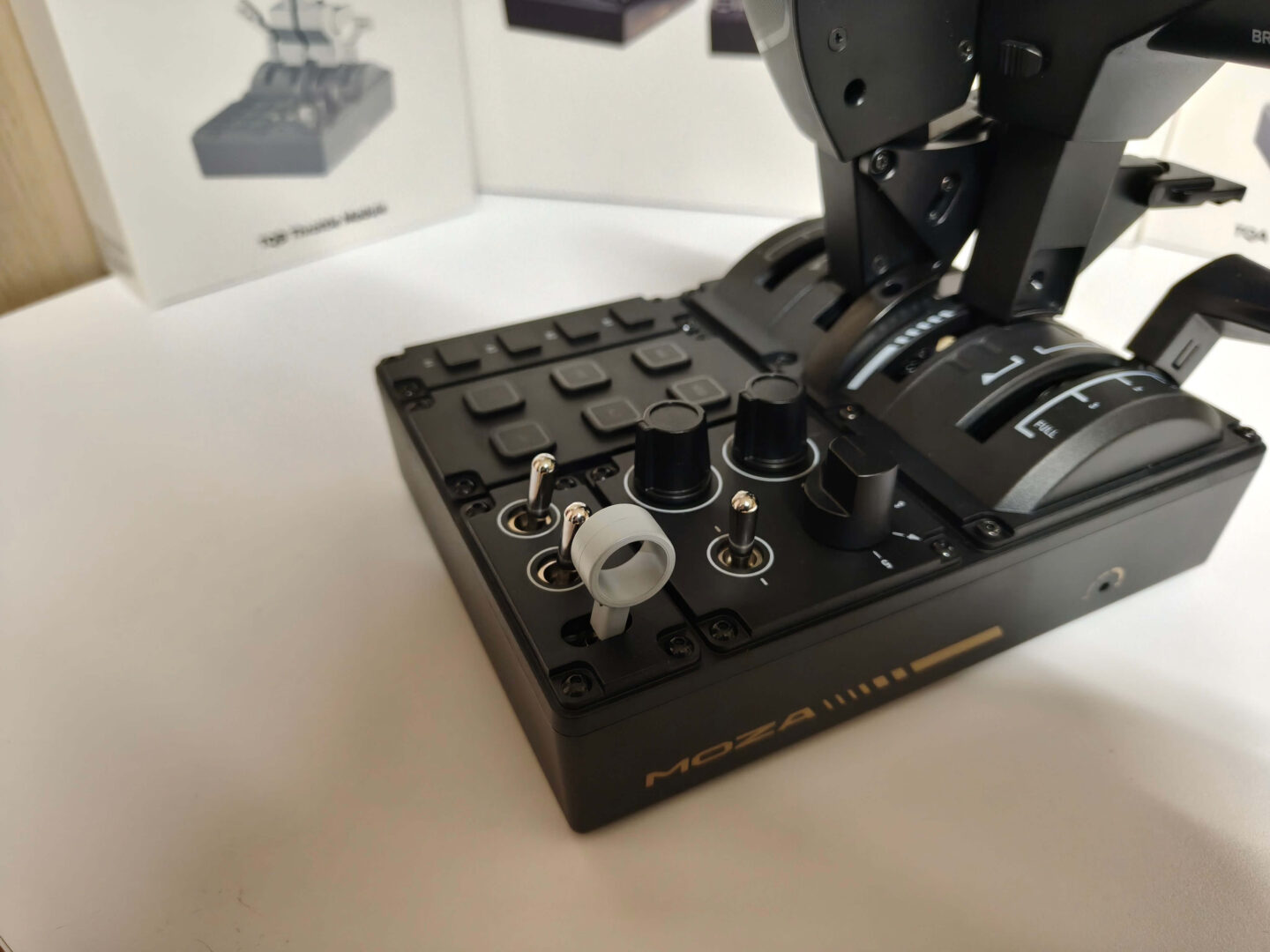Wszystkie elementy wykonano z wytrzymałych materiałów kompozytowych. MOZA MTQ Throttle Quadrant, to bez wątpienia bardzo dobry i wszechstronny panel sterowania. Znajdziemy na nim 23 fizyczne elementy sterujące, w tym 10 przycisków wielofunkcyjnych, 3 pokrętła, 3 przełączniki i dedykowaną dźwignią podwozia. Do tego sześć środkowych podpisanych przycisków ma podświetlenie RGB w 16,7 mln kolorów. Każdy element sterujący jest starannie rozmieszczony w ergonomicznych strefach, co zapewnia bezproblemowy dostęp. MOZA MTQ Throttle Quadrant możesz kupić w oficjalnym sklepie MOZA w cenie 219 euro.