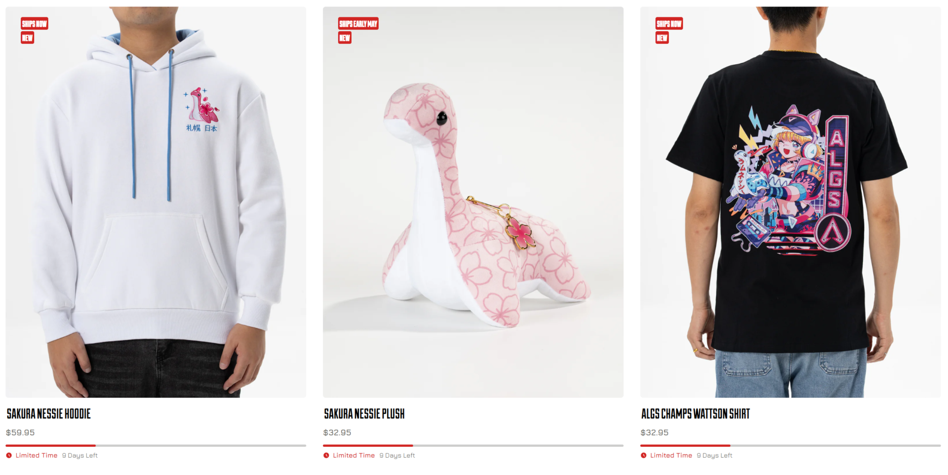 W sklepie Apex Legends znajdziemy też jeszcze przez kilka dni wyjątkową kolekcję merchu, przygotowaną specjalnie na mistrzostwa świata. Oprócz Nessie w wersji Sakura, znajdziemy także wyjątkową koszulkę, piękną białą bluzę z kapturem, a także bucket-hat Nessie. Merch dostępny będzie jeszcze tylko przez 9 dni. Warto wiedzieć, że wysyłka ze sklepu Apex Legends jest darmowa, a ceny zawierają wszystkie opłaty dla przesyłek europejskich.