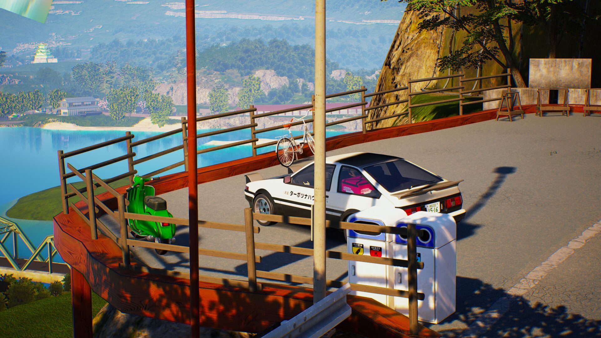 Sama historia to połączenie Tokyo Drift i Initial D, przy czym twórcy nawet nie kryją się z inspiracjami. Dostawy sushi zamiast tofu, malowania na boku aut, w tym całej gromady wyglądających jak te, którymi jeździł Takumi Fujiwara. I piszę “wyglądających jak”, gdyż Toyota od dawna nie udziela licencji grom promującym wyścigi uliczne, więc zamiast AE86 Sprinter Trueno, mamy Akina Phantom, też zresztą nawiązanie do mangi/anime. Całość dzieje się w fikcyjnej prefekturze Guntama. Nazwa zdaje się być połączeniem Gunma i Saitama, dwóch miejsc bardzo ważnych dla historii driftu. Znajdziemy w niej wiele lokacji ikonicznych dla kraju i popkultury, jak choćby wielki Gundam do niedawna jeszcze stojących w dokach Jokohamy.
