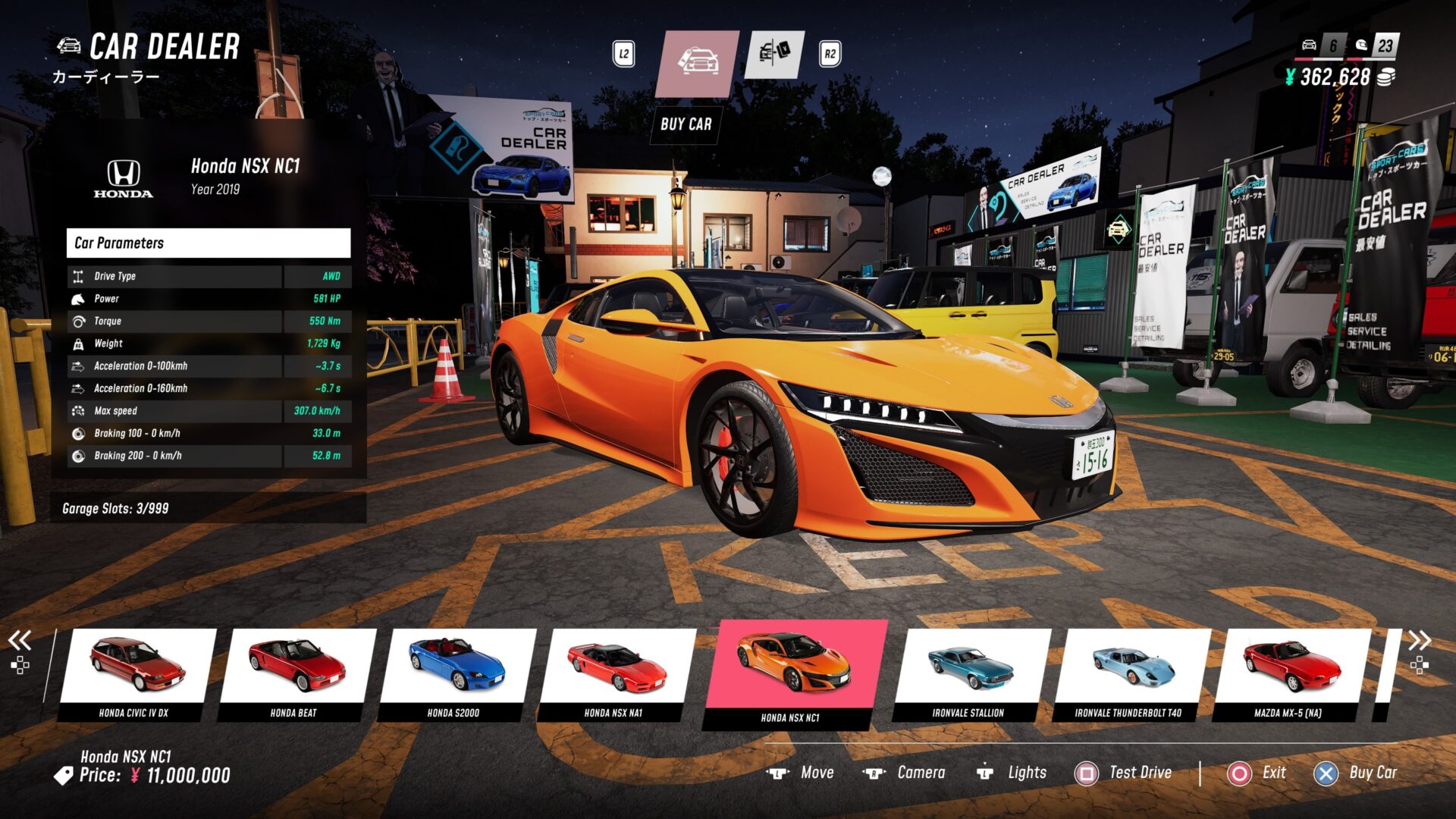 Grafika w JDM jest w porządku, zwłaszcza modele aut, ale nie ma tu nic co by zapierało dech w piersiach. Modele postaci są już kilka oczek niżej, ale widujemy je praktycznie tylko i wyłącznie w trybie foto, więc nie ma co marudzić. Tak samo nie mogę narzekać na muzykę. Mamy tu J-pop, Phonk i oczywiście Eurobeat oraz wiele innych. Owszem, brakuje bardziej znanych i kojarzonych z uliczną kulturą artystów, ale pamiętajmy, że grę stworzyło studio z ograniczonym budżetem, a licencjonowanie muzyki tanie nie jest, nawet w porównaniu z autami.