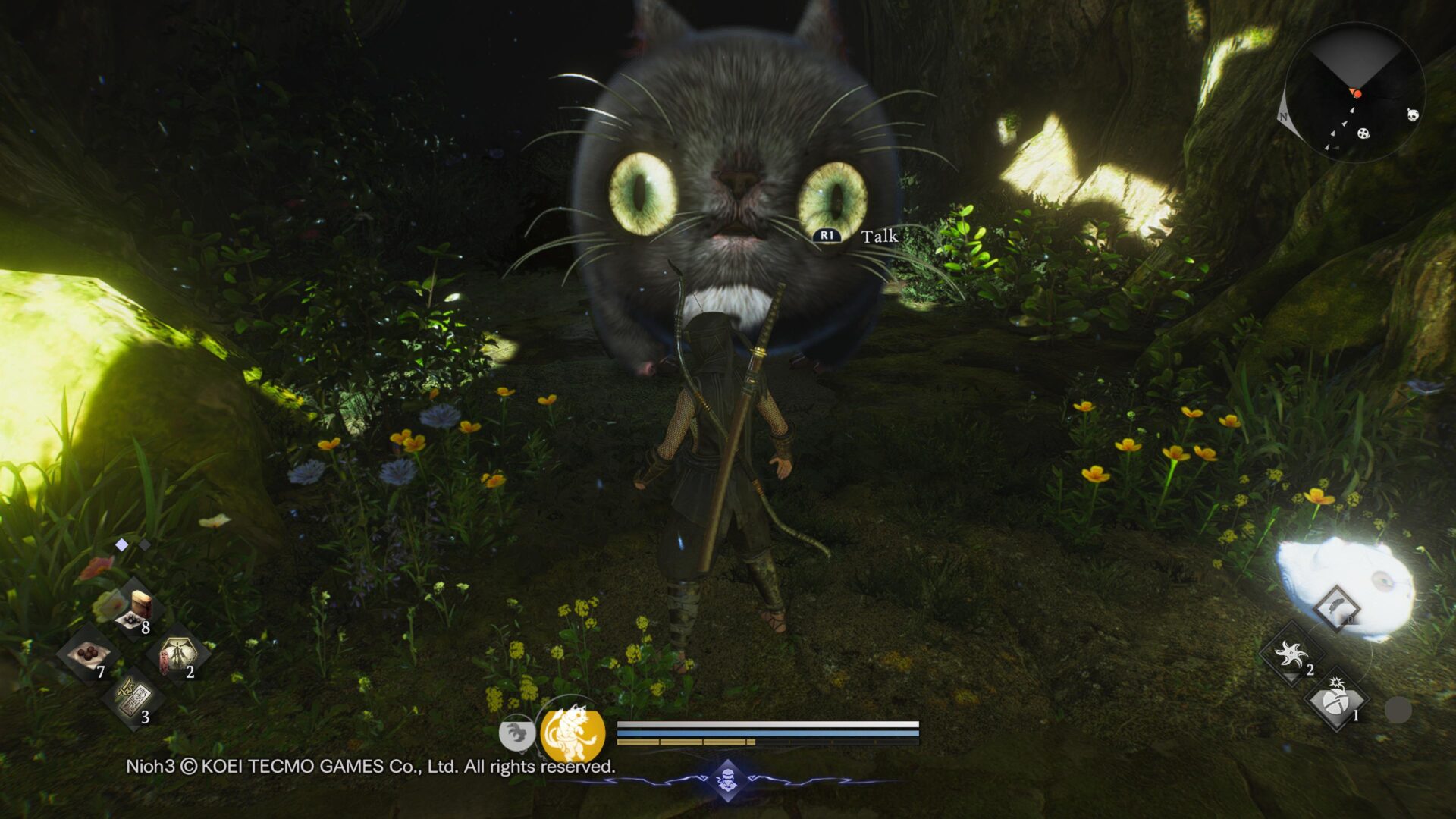 Nowością w Nioh 3 jest dodanie dwóch umiejętności do każdego ducha strażniczego. To tak jakby skorzystanie z ataku lekkiego (L1 + kwadrat) oraz ciężkiego (L1 + trójkąt) naszego stałego sojusznika. Lekki atak dostępny jest od razu, potężniejszy zdobędziemy w miarę rozwoju fabuły lub wypełneiniu określonego celu. Aby skorzystać z umiejętności ducha opiekuńczego, musimy napełniać miernik siły ducha, który znajduje się tuż pod paskiem życia oraz staminy (ki). Oczywiście robimy to, zadając obrażenia przeciwnikom.
