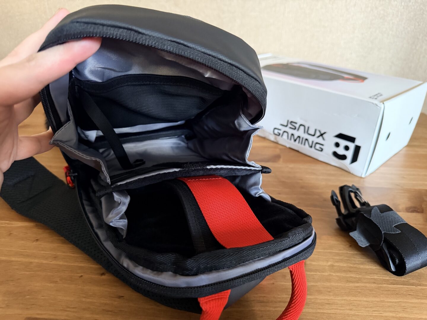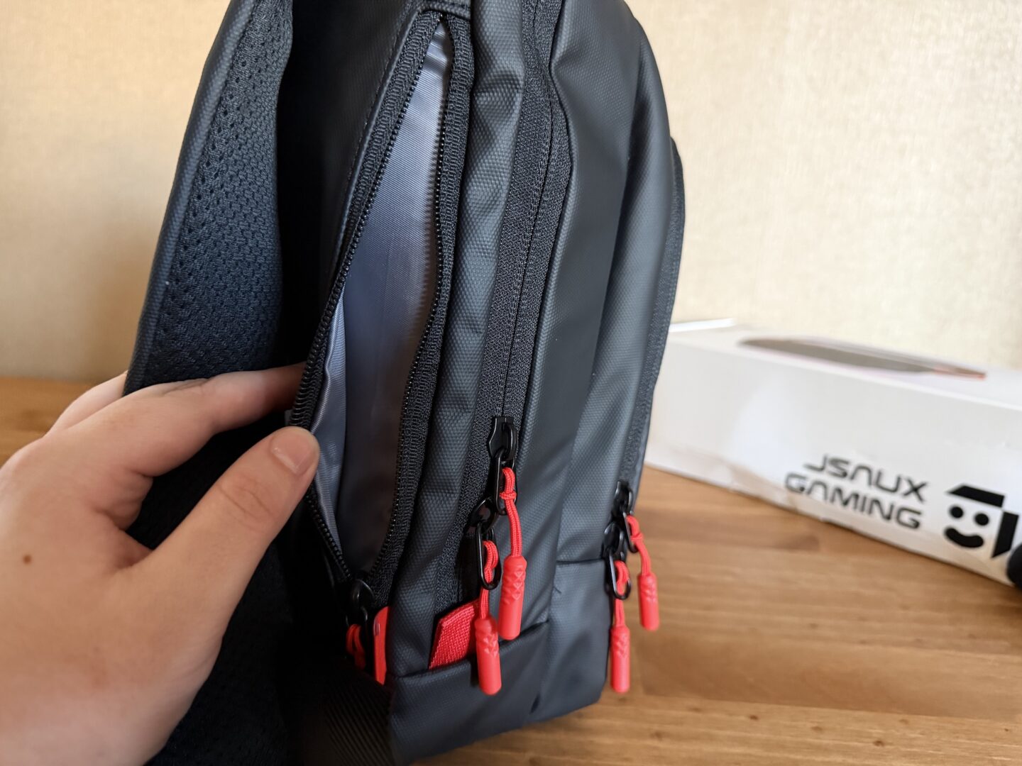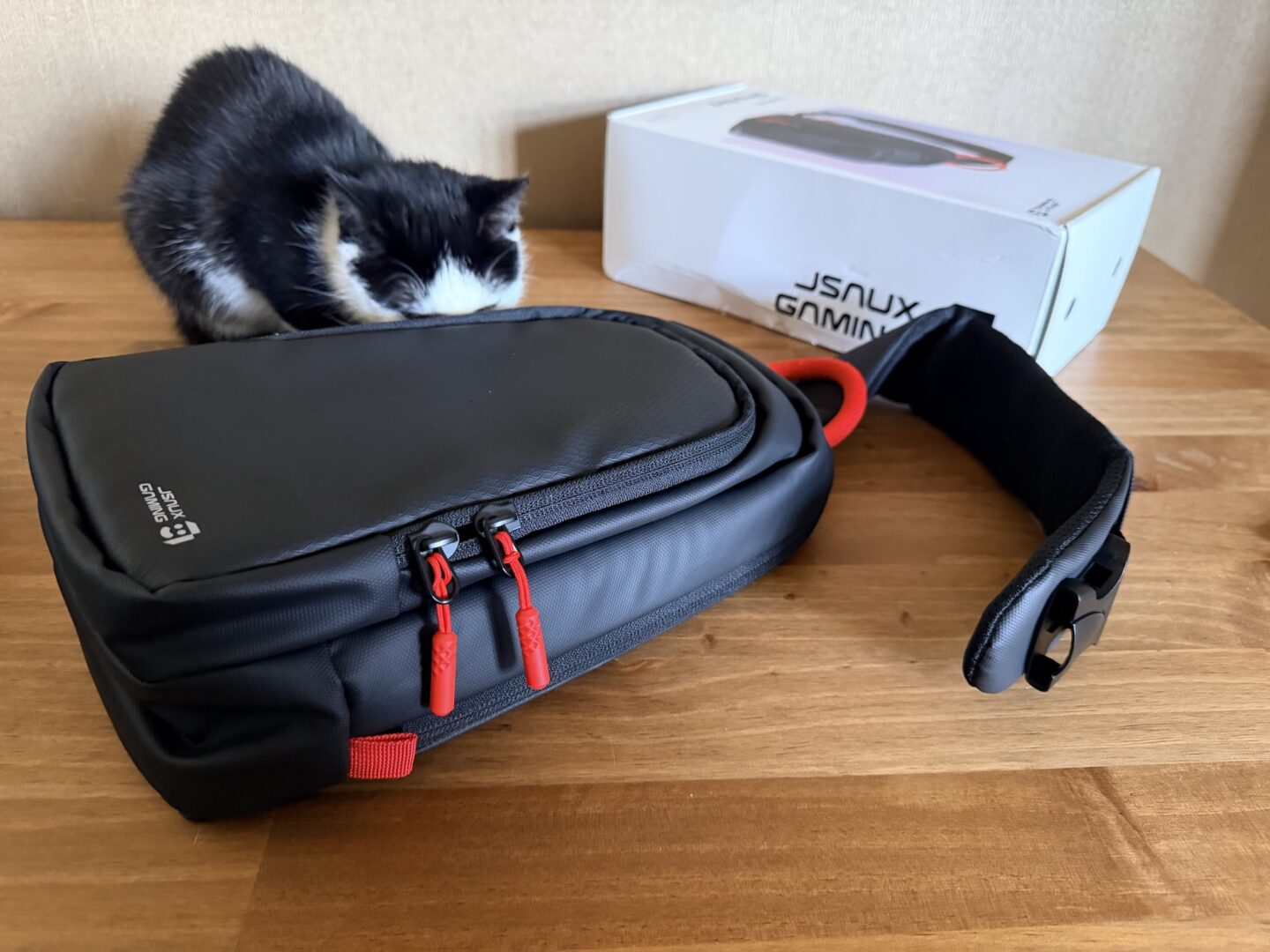 Torba Crossbody Sling Bag to moim zdaniem świetne akcesorium dla graczy, którzy potrzebują dedykowanego plecaka na swoją przenośną konsolę. Dzięki specjalnemu separatorowi w środku gałki naszego handhelda będą bezpieczne, a dodatkowe miejsce możemy przeznaczyć na nieodzowne akcesoria, które po normalnym plecaku latałyby bez ładu i składu. Sling Bag pomieści nawet ponad dwa razy grubszego od Switcha ROG Xbox Ally!