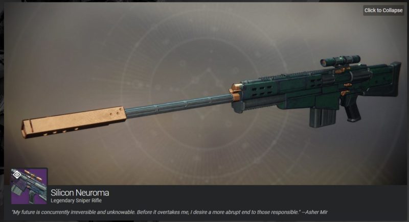 Unique Item: Silicon Neuroma – Legendary Sniper Rifle