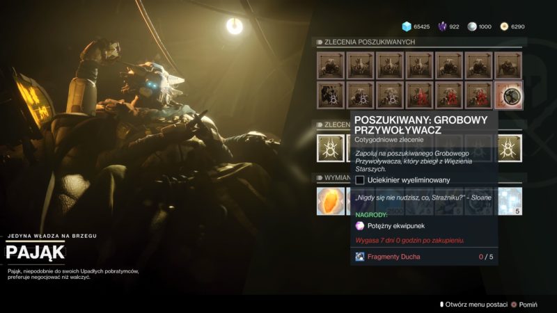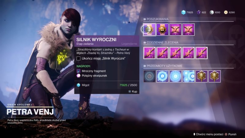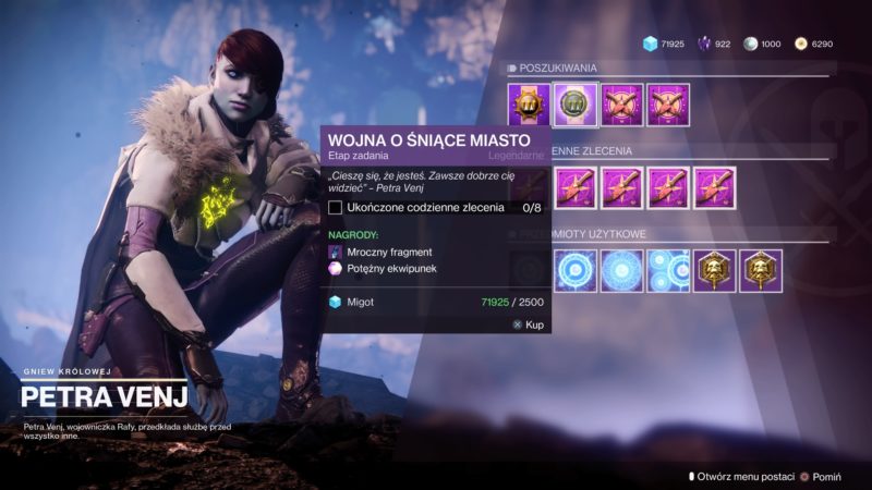 - Wykonaj 20 zleceń dla Ikory, bierzecie je od Tess, Zavali, Shaxxa, Hawthorne i Włóczęgi oraz opiekunów planet.