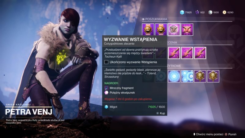 - Ukończenie dwóch tygodniowych wyzwań „Brama między światami” i „Wyzwanie Wstąpienia” zostanie nagrodzone potężnym engramem.