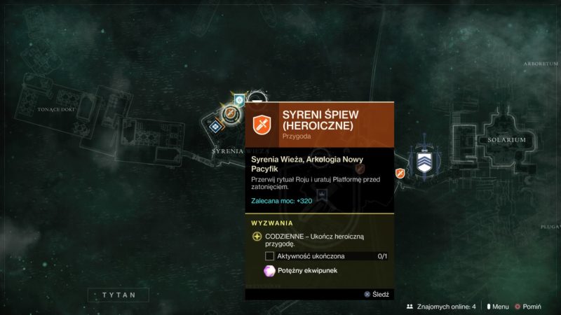 - Ukończyć heroiczną przygodę “Syreni śpiew” na Tytanie