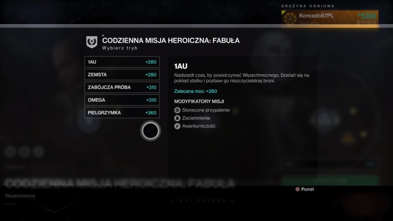 - Ukończ dowolne 3 codzienne misje heroiczne/mission heroic