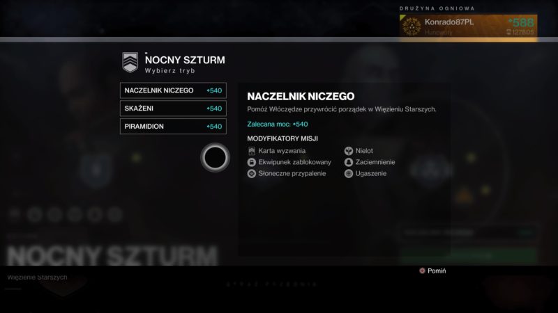 - Ukończ nocny szturm/ nightfall (Naczelnik niczego, Skażeni lub Piramidion)